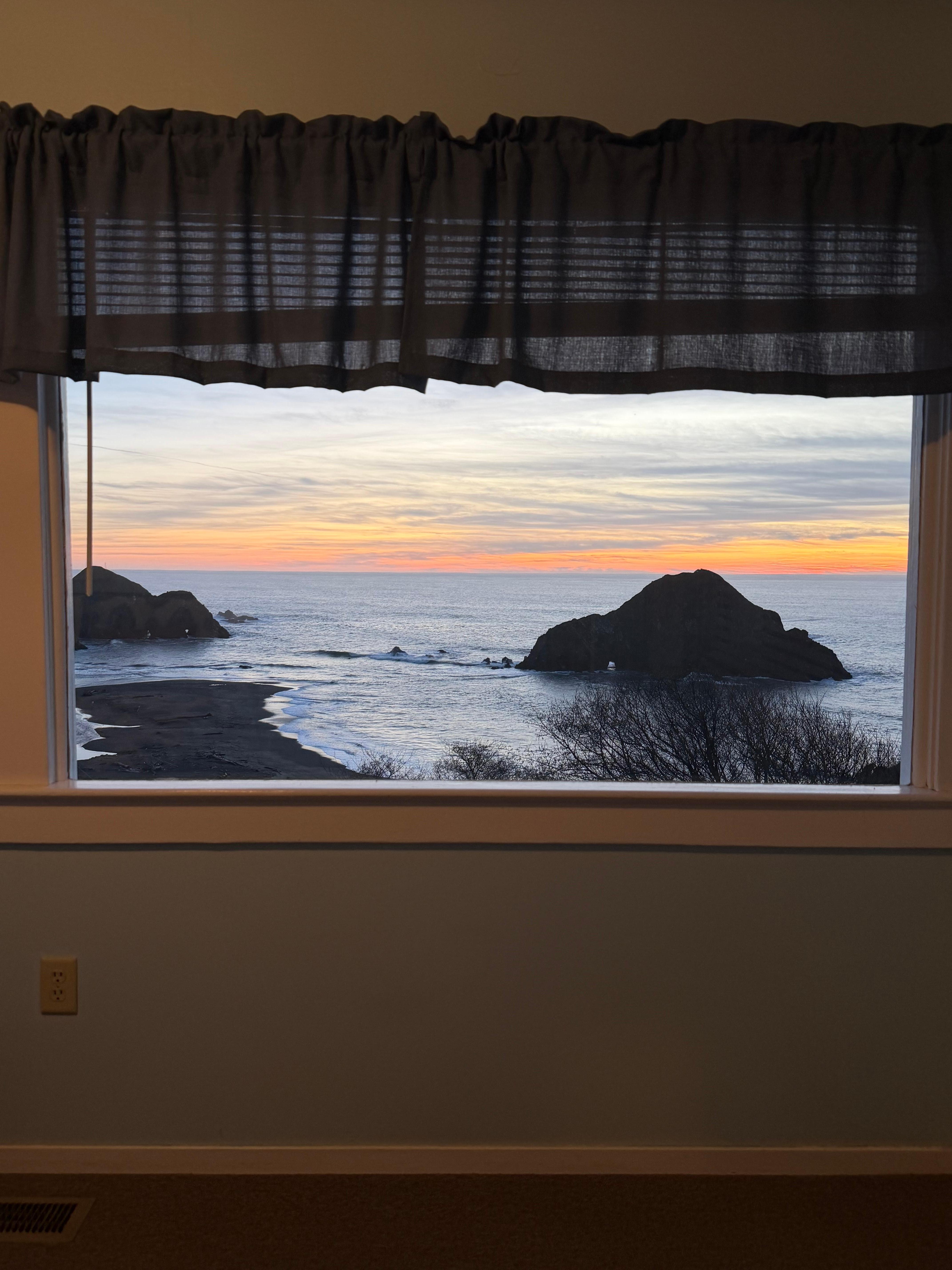 We had a wonderful time at this VRBO! Beautiful vistas, quiet with only the sounds of the ocean and some birds. Enjoyed exploring the area Redwoods and small towns. The drives from Bodega Bay to Ft. Bragg on the PCH were breathtaking. The view from the bedroom picture windows are incredible and the gas fireplace complemented the whole house vibe! Some suggestions are to have better lighting for the driveway since it’s on a cliff, replace the kitchen rug as it is a tripping hazard and provide a baking pan or cookie sheet. We would definitely stay here again!