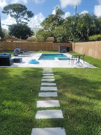 I choose this home because it had a huge flat back yard perfect for a new pool. I choose the neighborhood because its a 10 minute walk to the drive. 3 min walk to Starbucks. 3 min walk to dog park. 10 min drive to beach. 20 min drive to FLL airport