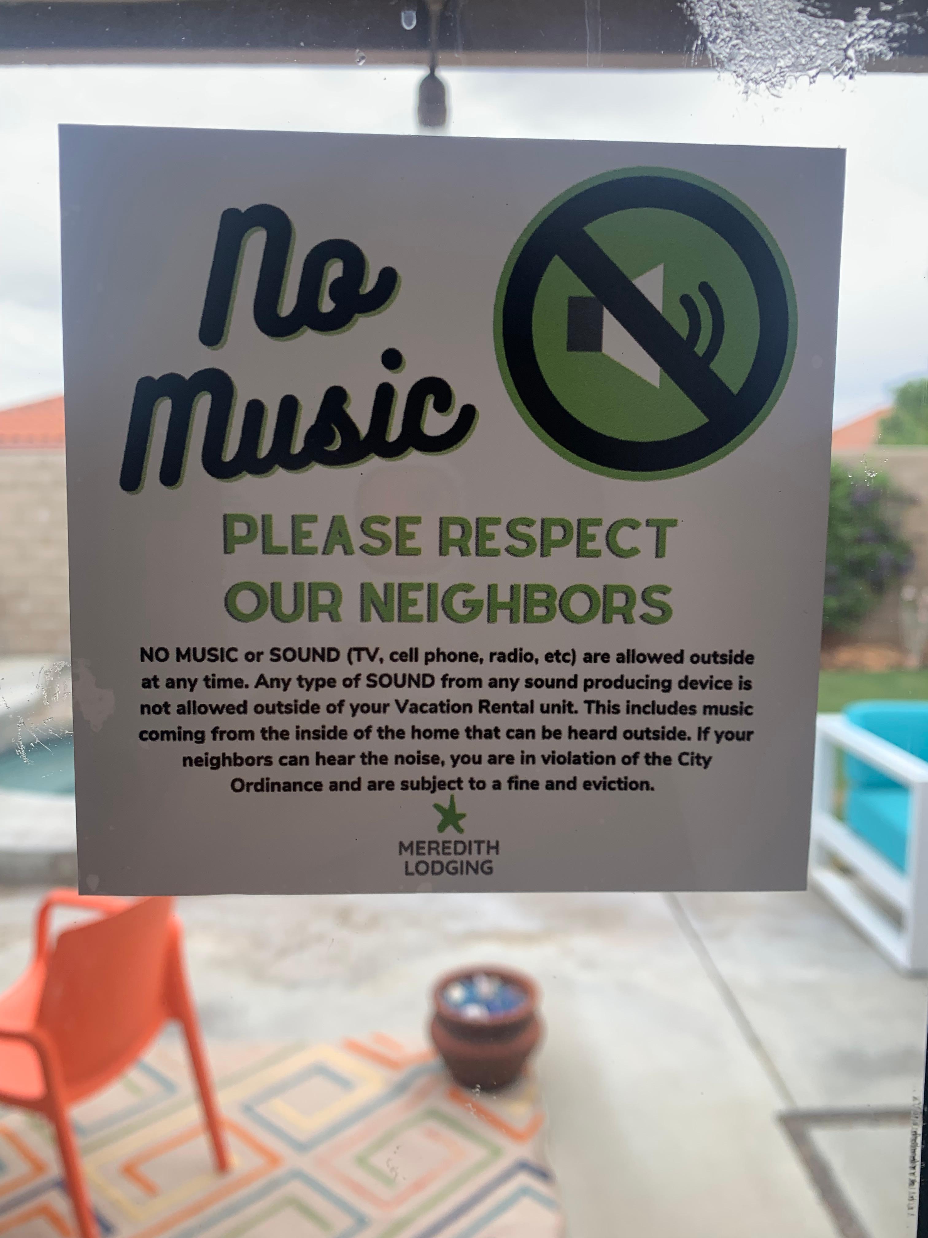 City of Palm Springs Good Neighbor Policies: NO MUSIC or SOUND (TV, cell phone, radio, etc) are allowed outside at any time. Any type of SOUND from...