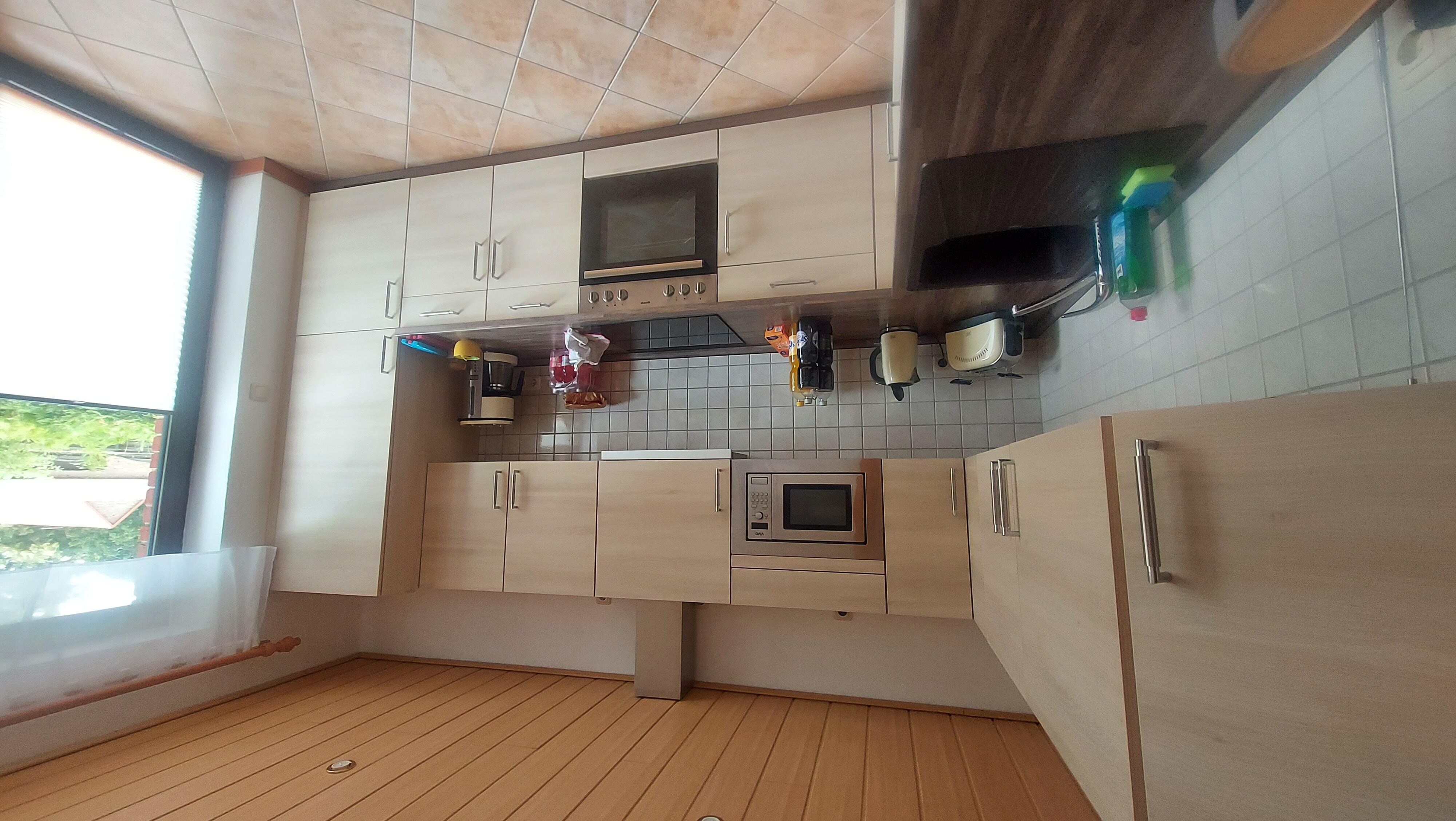 Vollwertig ausgestattete Küche (12 qm ) :Ceranfeld 4-flammig, Dunstabzug, Geschirrspüler, Mikrowelle, Wasserkocher, Toaster, Kaffeemaschine, Kühl-Gefrierkombination, Esstisch und Radio