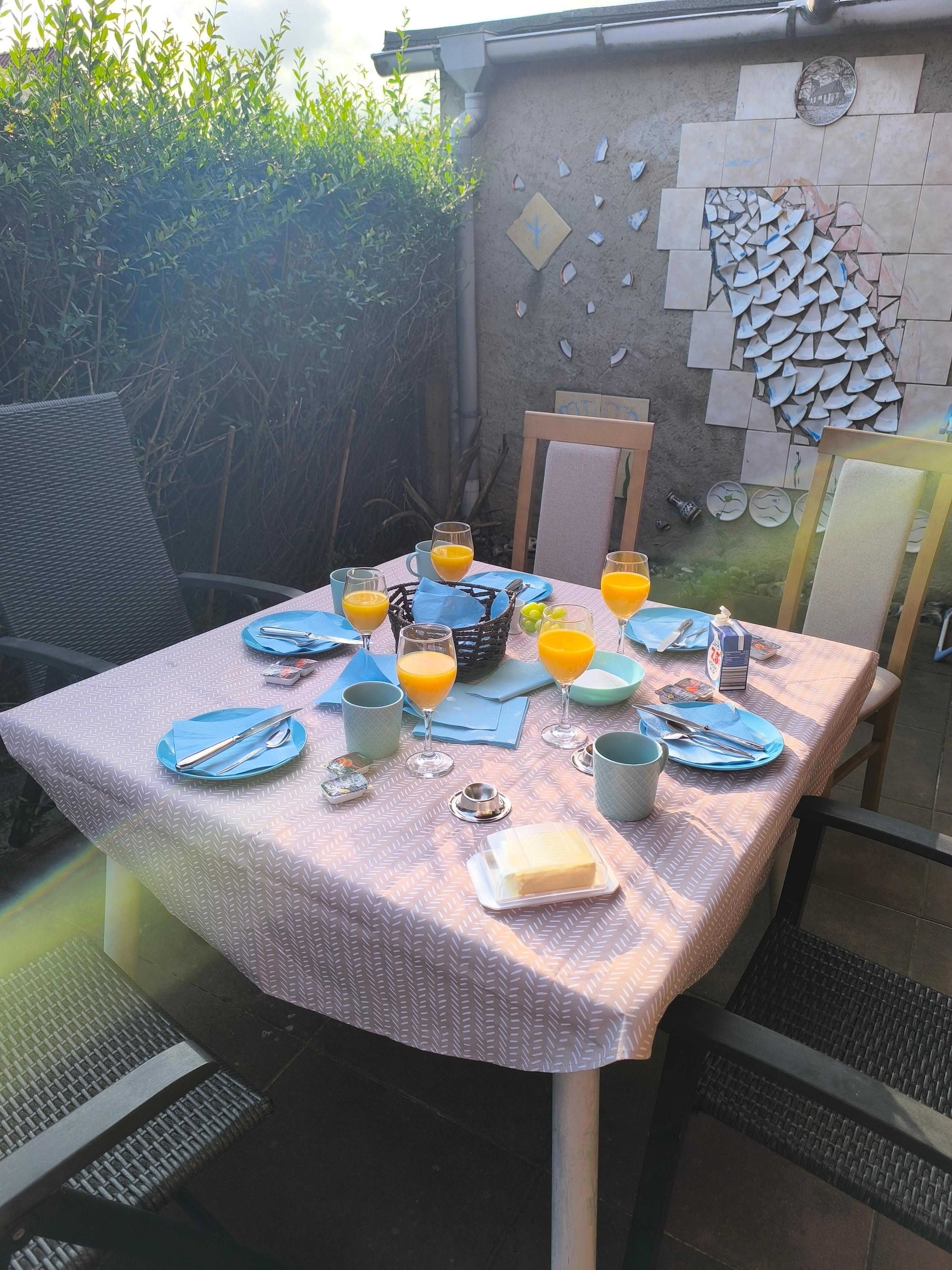 Die teilüberdachte Terrasse ist möbliert und hat Ostausrichtung. Auf der Terrasse haben Sie eine Abstellmöglichkeit für Ihre Fahrräder.