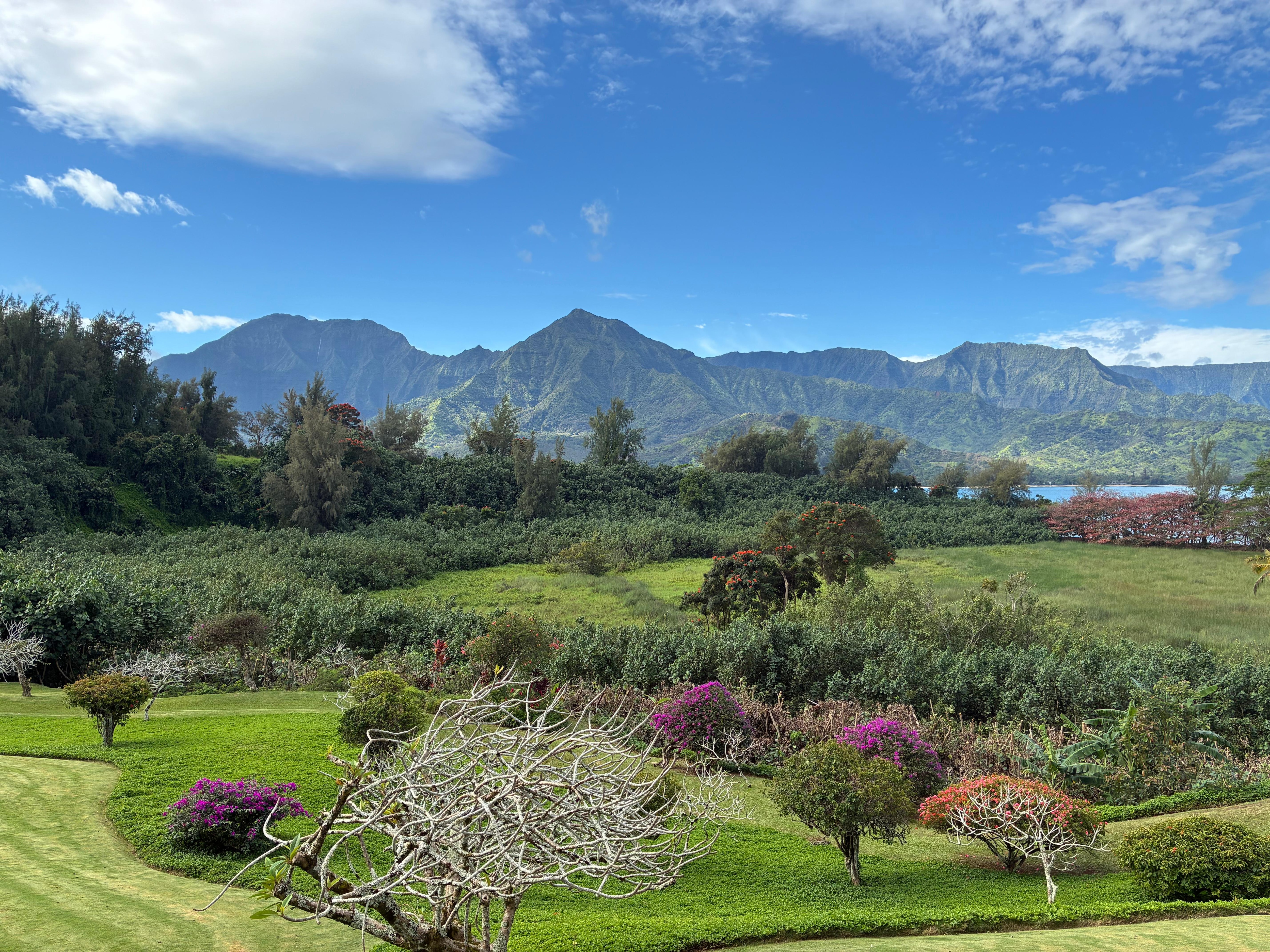 Das Hanalei Bay Resort ist ein 5-Sterne-Resort und gilt allgemein als einer der schönsten Orte auf Kauai. Das 8231 befindet sich in idealer Lage im Plumeria-Gebäude auf der "Spitze" dieses 22 Hektar großen Resorts und bietet Ihnen eine spektakuläre Aussicht! Dieses Hotelzimmer bietet eine der besten Aussichten in ganz Kauai. Wenn Sie auf die private Veranda hinausblicken oder hinausgehen, haben Sie einen unverbauten Blick auf die Hanalei-Bucht und einen Panoramablick auf 4000 Fuß hohe, mit Wasserfällen übersäte Berge. Eine der seltenen freien Aussichten auf Kauai. Von der Veranda aus überblicken Sie ein geschütztes Vogelschutzgebiet, während Sie die Wildwasser-Brandung der Hanalei-Bucht beobachten und lauschen.