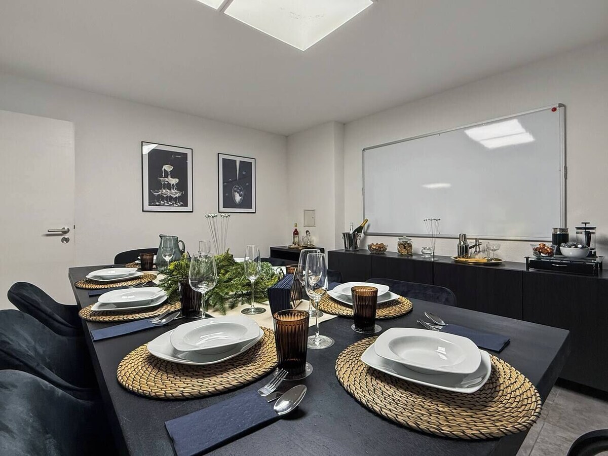 Geräumiges 4-Schlafzimmer-Apartment im Zentrum von Stuttgart, perfekt für große Gruppen oder Familien. Platz für bis zu 17 Gäste mit 3 modernen Bädern. Entspannen Sie bei Netflix, kochen Sie in der voll ausgestatteten Küche oder genießen Sie eine Runde Billard im Spielzimmer. Nur wenige Minuten zu ÖPNV, Shopping und Restaurants. Mit schnellem WLAN, Waschmaschine/Trockner und 24/7 Self Check-in bietet die Unterkunft maximalen Komfort und Flexibilitä