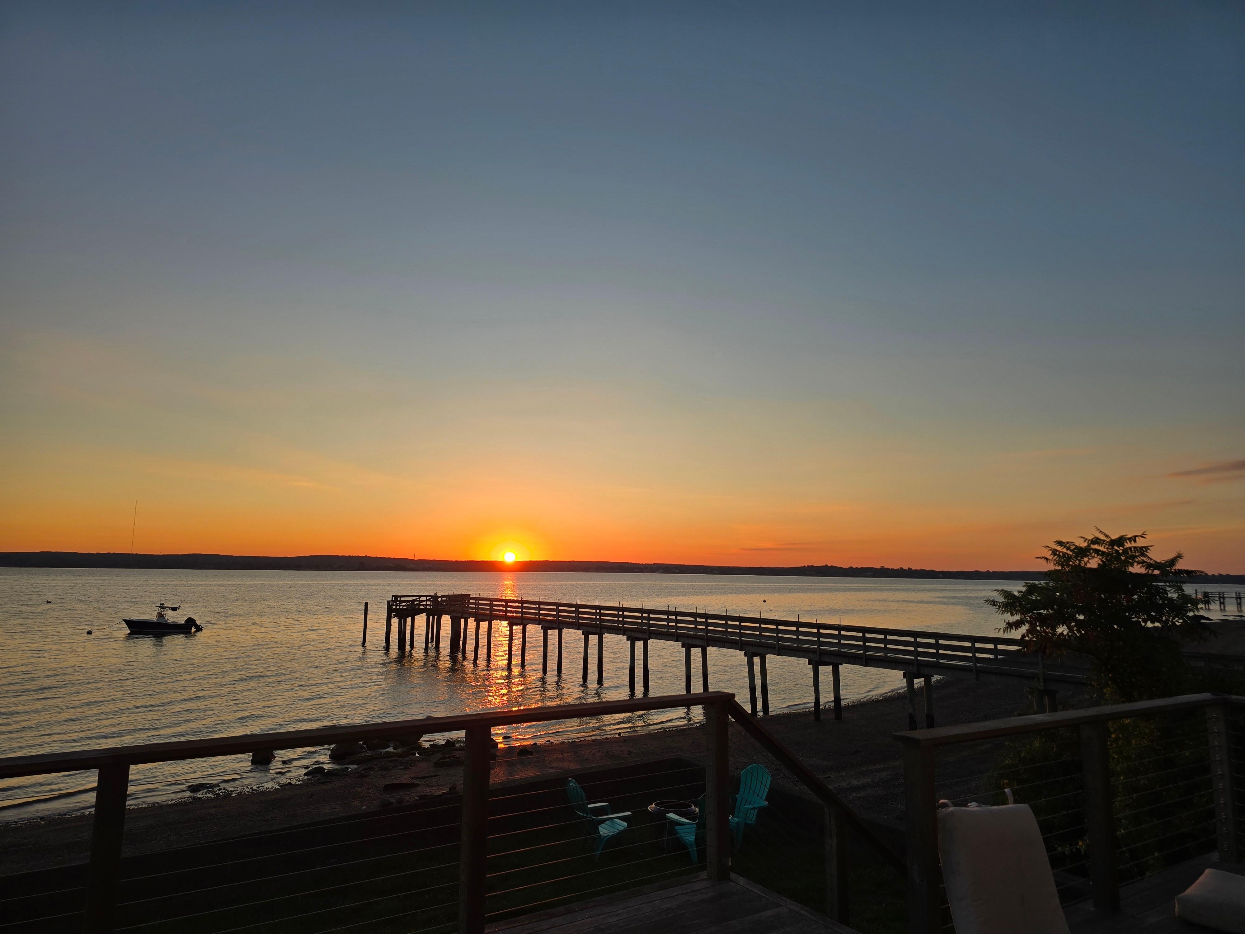 Diese Unterkunft mit Panoramablick auf das Wasser und direktem Zugang zum Strand ist der ideale Ort für einen Sommerurlaub mit Freunden und der Familie oder einen romantischen Rückzugsort für Paare. Wachen Sie mit einem atemberaubenden Sonnenaufgang auf und genießen Sie Ihren Morgenkaffee auf der weitläufigen Mahagoni-Terrasse mit Blick auf den Fluss Sakonnet. Dieses 375 Quadratmeter große Deck eignet sich hervorragend zum Sonnenbaden, Lesen und Entspannen auf den Loungemöbeln sowie zum Abendessen und für Cocktails!
