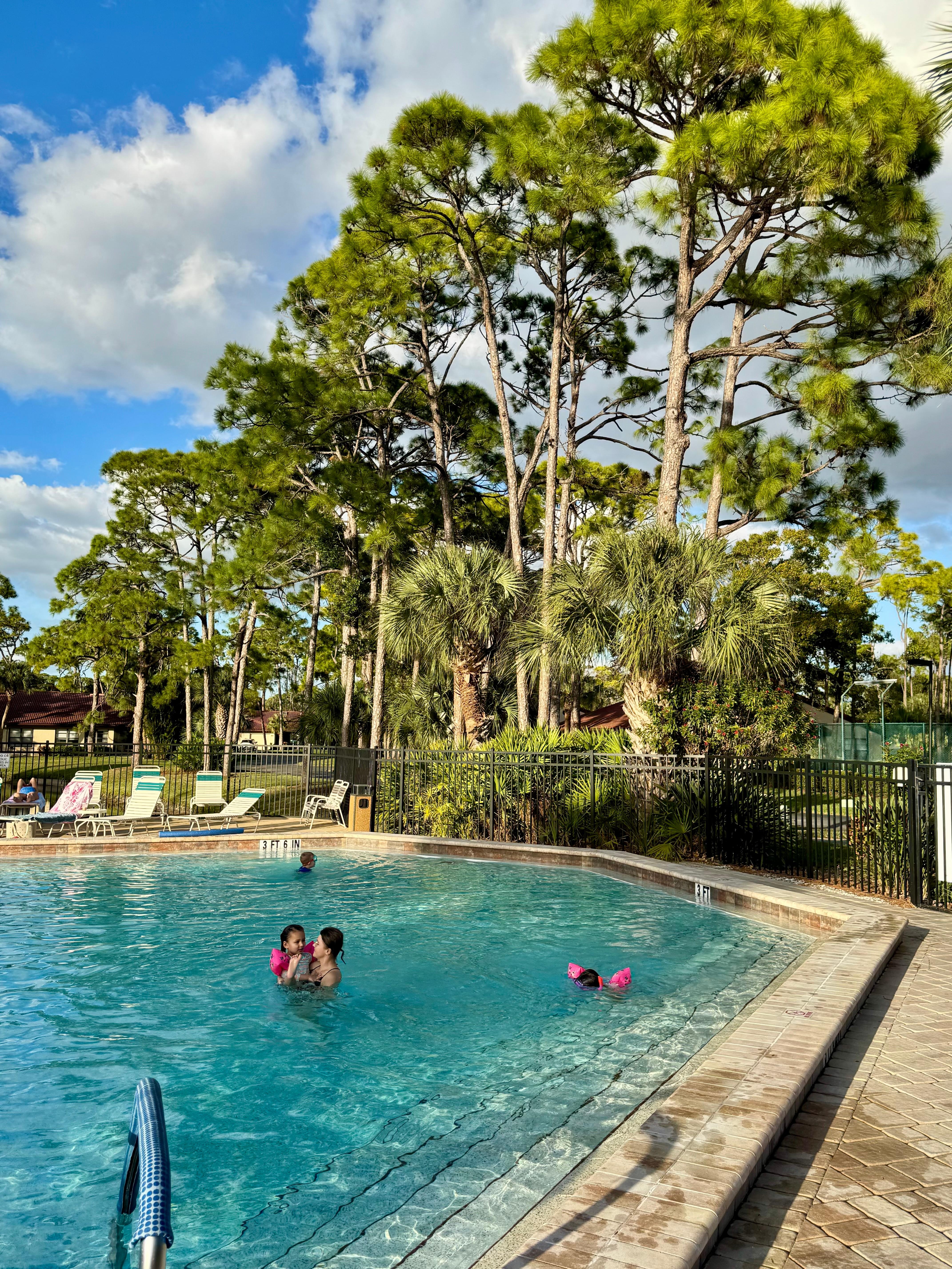 Zu den Annehmlichkeiten im Village des Pins gehören ein beheizter Pool und ein Whirlpool, Tennis- und Shuffleboard-Plätze, ein Miniputting Green, ein Basketballkorb und ein Clubhaus. Das Clubhaus bietet Ihnen eine Vielzahl von Aktivitäten, darunter Billard, Brettspiele, Rätsel und eine Bibliothek mit Büchertausch. Die gesamte Ausrüstung für die Außenausstattung befindet sich im Clubhaus. Direkt neben dem Clubhaus befindet sich der Grill- und Picknickbereich neben dem See und dem Wasserbrunnen. Es gibt zwei beleuchtete Tennisplätze, die Tag oder Nacht geöffnet sind.
