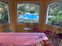 Es ist äußerst geräumig, ruhig, sehr gepflegt, geschmackvoll eingerichtet und die Technik ist auf dem neuesten Stand. Der große, schön angelegte Garten grenzt nach Süden an einen Golfplatz, rückwärtig an Bauernland. Der auf 26° C beheizte große offene Pool erlaubt Schwimmen auch für Erwachsene und ist sehr sauber.