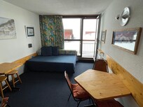 Appartement avec plan compact et cuisine US bien équipée. Séjour spacieux, couchage pour 3-4 enfants. Vrai lit pour adulte très confortable. On aime le toaster, lave vaisselle, micro-onde et four. Jolie vue sur la vallée. Immeuble au pied des pistes et des commerces. Le stockage des skis sur le balcon n'est pas gênant, voire plutôt pratique. Proprio sympa et disponible.