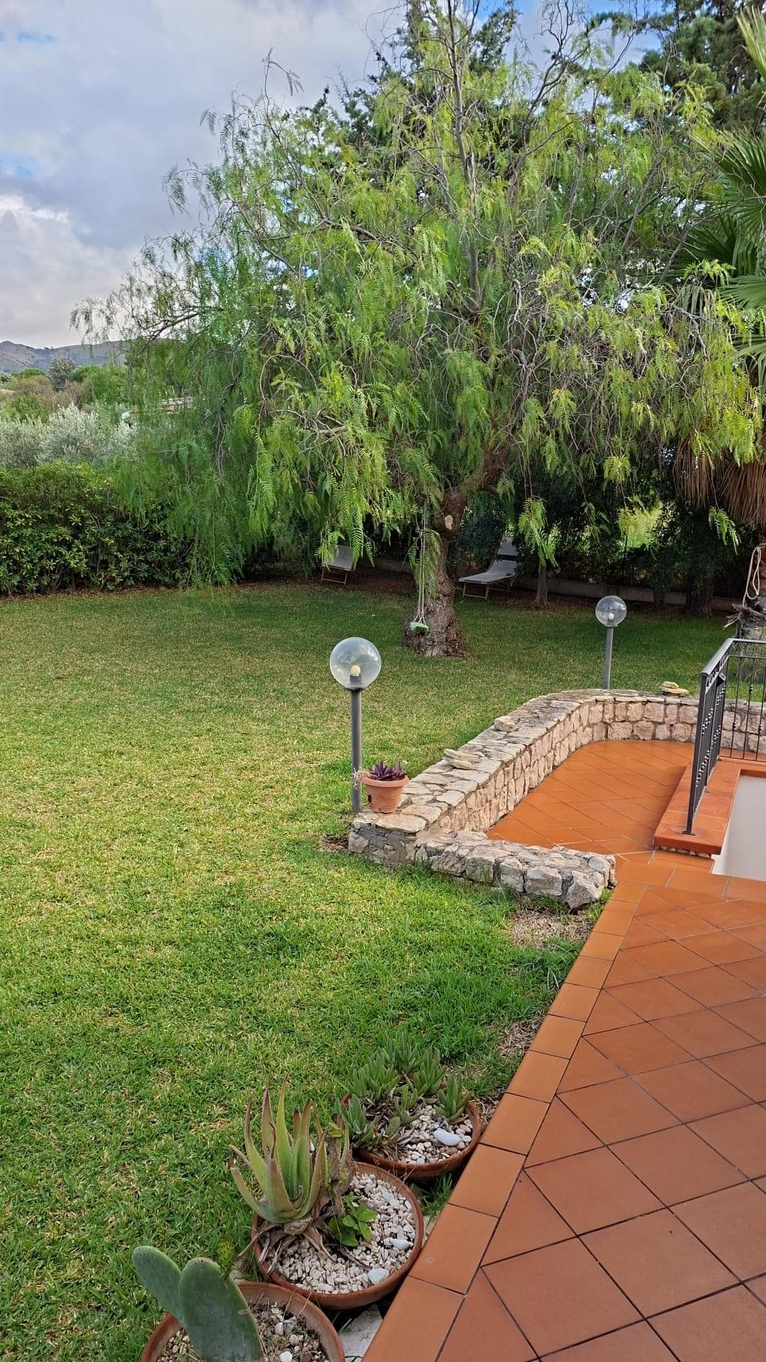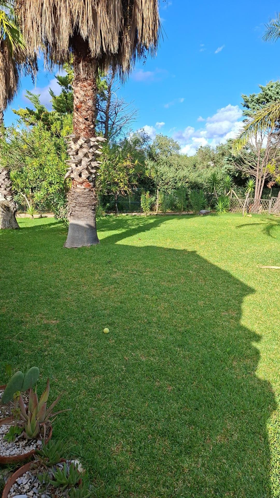 Das Haus ist umgeben von einem großen Garten mit mediterranen Pflanzen, Rosen, Palmen, Olivenbäumen und einer großen Wiese. Es ist komplett eingezäunt, hat ein Zugangstor und ist mit ausreichend Parkplätzen, Außendusche, Schaukel, Pavillon mit Tisch und vier Stühlen ausgestattet. Angrenzend an den Garten gibt es eine Terrasse mit festem Grill, Spüle, Tischplatte, Herd, Marmortisch und Gartenstühlen, Sofa zum Grillen und Essen im Freien.