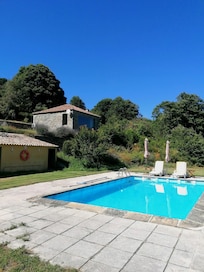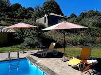 Casa da Montanha, (Mountain house) is located in a farm close to the Douro Valley were the Port Wine is produced, (12 km) that has been recently recognized by Unesco as world heritage. Close by are historical villages, medieval monasteries, and a fascinating medieval village almost intact since the 12th century. Being so close to the river Douro this makes possible for visitors to envoy trips by boat on the river including the visit to wine cellars. This property that covers 8 acres, lawns, shrubs, and trees most of them oak, has been in my family for the last 200 years, the house is located at 750 metres high with a spectacular view over a beautiful valley facing a mountain of great beauty. Sitting in the garden or by the pool, gazing the view, breathing fresh air, it's a great place to relax due to the fact of being totally isolated in nature, the nearest house is the owners house at a distance of 60 metres .