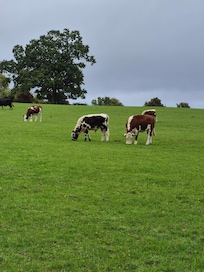 Single level open plan living (2 steps down to twin bedroom). Working beef farm. Area of Outstanding Natural Beauty.