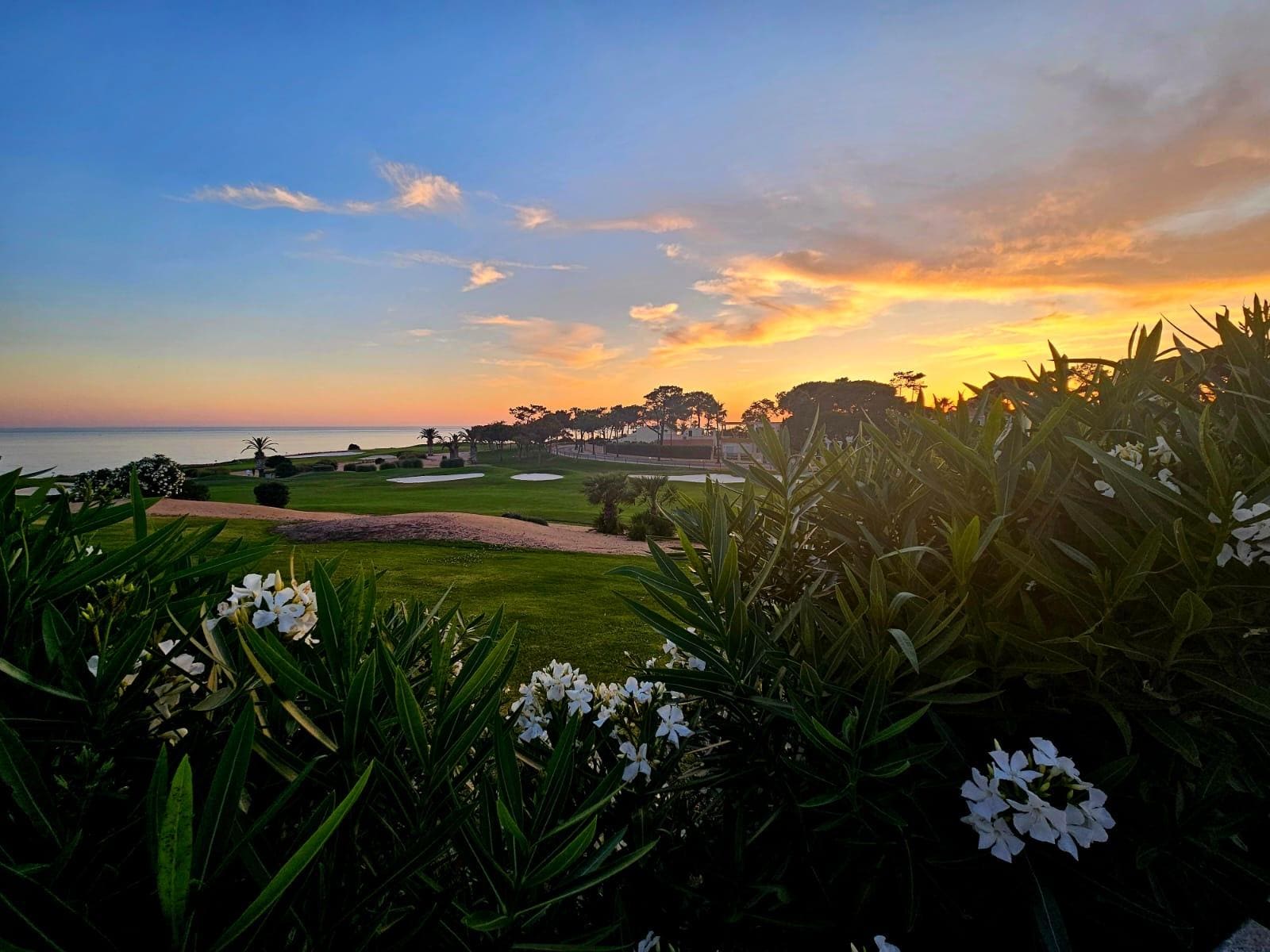 Draußen; die Außenterrasse bietet einen fantastischen Blick über den Golfplatz bis hin zum nur wenige Meter entfernten Atlantik. Die Terrasse ist komplett ummauert mit integriertem BBQ und hat einen eigenen privaten Zugang zum Fairway. Zentral im Außenbereich befindet sich ein frei geformter Swimmingpool, umgeben von luxuriösen Sonnenliegen und einer gemütlichen Sitzecke, die auch für das Frühstück und alle anderen Mahlzeiten genutzt werden kann. Fast die Hälfte der Terrasse ist überdacht und bietet bei Bedarf ausreichend schattige Plätze, an wirklich heißen Tagen ist der überdachte Bereich sogar durch eine große Markise erweiterbar. Auch wenn Sie auf der Außenterrasse sitzen, haben Sie eine wunderbare Aussicht!