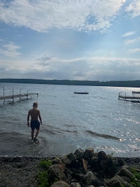 Sehen Sie den wunderschönen Sonnenaufgang von Ihrem geräumigen Deck aus, das direkt am Wasser liegt. Gehen Sie auf Ihrem 40 'Dock, das reichlich tiefes Wasser zum Schwimmen und Bootfahren bietet. Genügend Parkplätze und Platz, um den wunderschönen Owasco-See zu genießen. Dieses Haus verfügt über eine Wohnküche, ein Wohnzimmer, ein Esszimmer und eine Sonnenterrasse, die sich über die gesamte Länge des Hauses erstreckt und Blick auf den See bietet. Jetzt buchen Frühling, Sommer und Herbst Termine. WIFI und Kabel jetzt verfügbar.