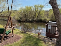 Beyond the peaceful surroundings, our property provides endless opportunities for adventure and relaxation. Fly fishing enthusiasts will love casting for trout right from the backyard, as the river is stocked multiple times a year, making it a haven for anglers. Interacting with passing canoers and floaters adds a fun and friendly touch to the experience. The flat, park-like setting is perfect for children to play freely, with several swings and a large outdoor wooden picnic table set right by the river for memorable family gatherings. Whether you are looking to unwind in nature or seek out outdoor adventures, our property offers something special for everyone.