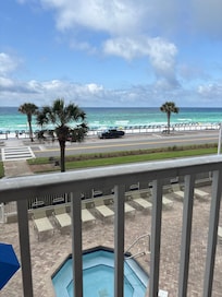 Der Balkon bietet eine herrliche full-on Blick auf den Golf von Mexiko und den Strand! Es gibt einen Tisch und Stühle, so zu sitzen, entspannen, genießen Sie die Aussicht, schöne Brise, Wellen und Sonne oder nehmen Sie einen Sonnenuntergang, wie es in den Golf verschwindet.