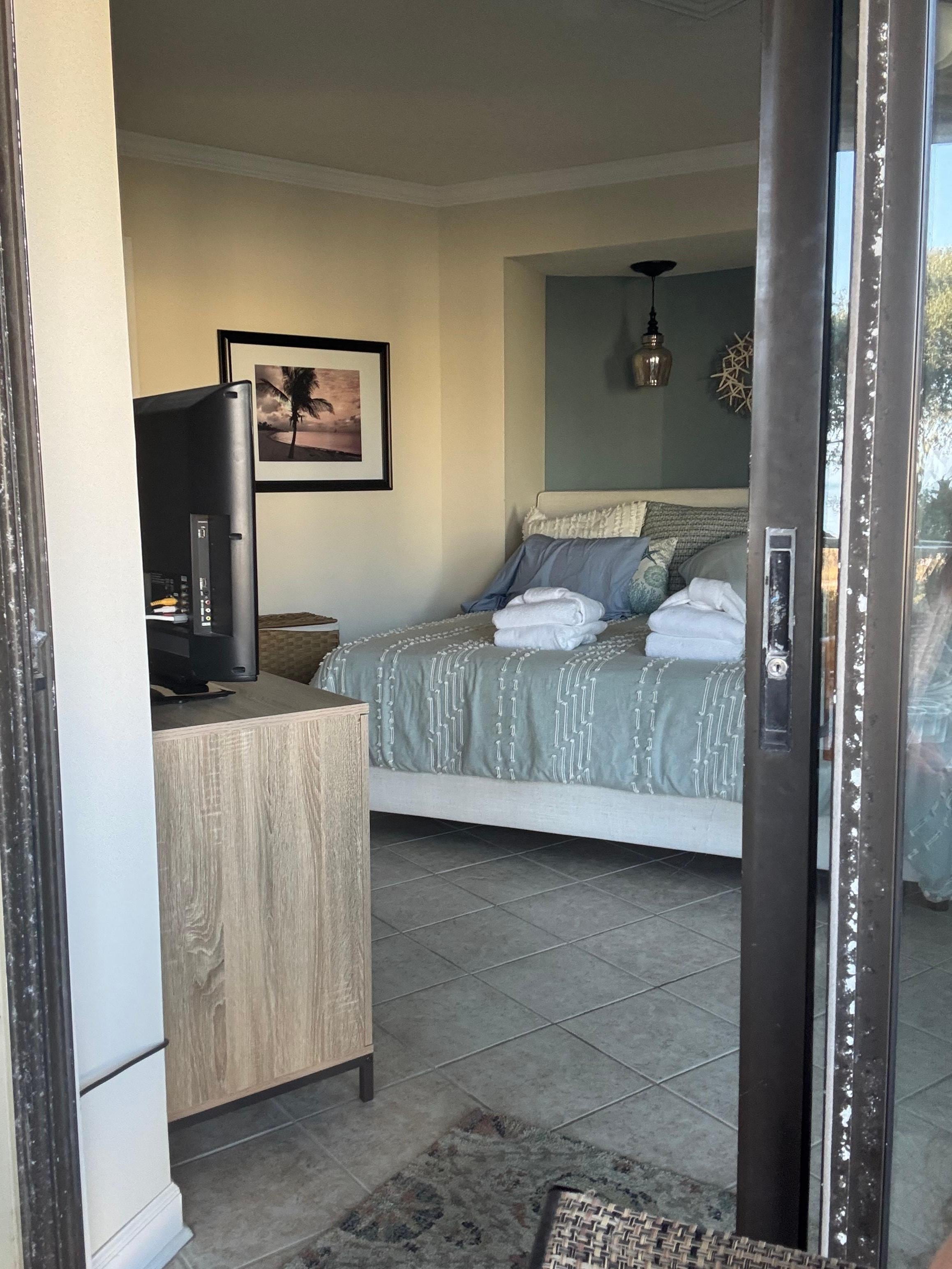 Es gibt ein Queen-Schlafsofa im Wohnzimmer und Taschentüren in jedem Zimmer für Privatsphäre.