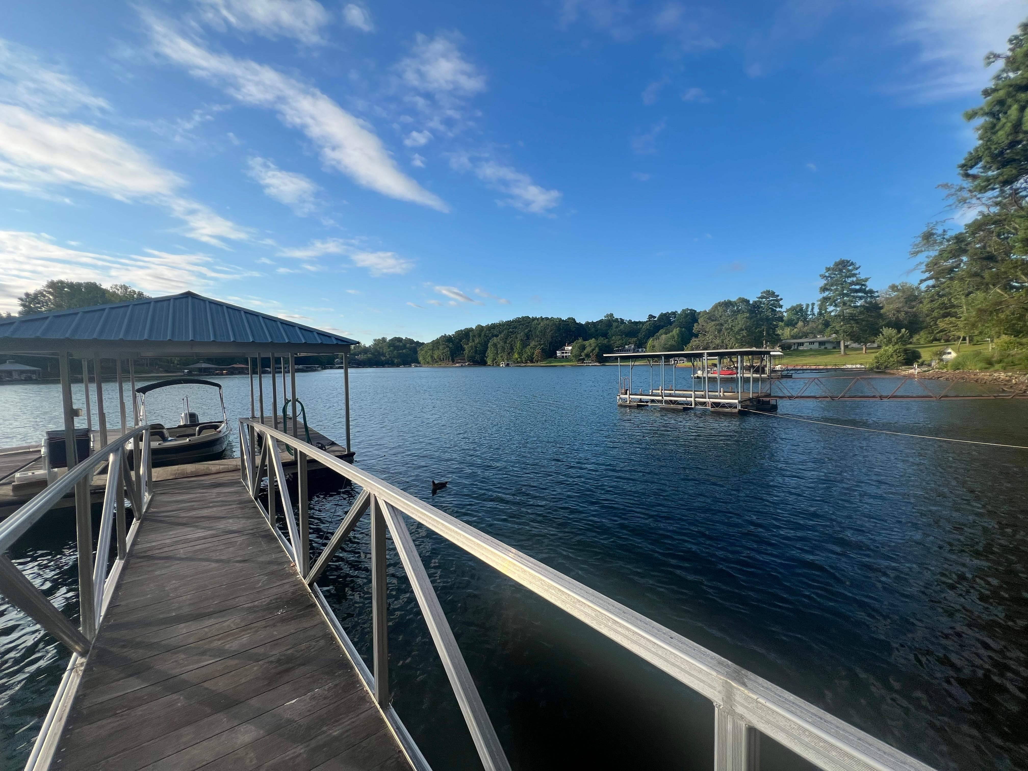 Das Haus mit Blick auf eine malerische Bucht, die Schönheit bietet, Ruhe und ist weniger als eine Ein-minütige Bootsfahrt zu den wichtigsten Teil des Sees. Der See Keowee Marina befindet sich in Sichtweite von der Veranda. Es bietet einen Bootsanleger und auch Boot und See Spielzeug Verleih. Der See ist umgeben von schönen Häusern, natürlicher Wälder mit einer Kulisse der Blue Ridge Mountains in der Ferne umgeben und bietet vier verschiedene noch milden Jahreszeiten.
