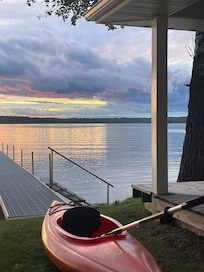 We fell in love with the quaintness of the cottage, from the wrap around porch, to being so close to the shoreline. The sunsets are stunning, and second to none. The AhWaGa is an authentic experience of an old Northern Michigan cottage, loved by families and friends for generations. To the north, views of unspoiled shoreline. We share the cottage with the Eagle who flies overhead from the nest at the river's mouth, and the loons who swim our shoreline.