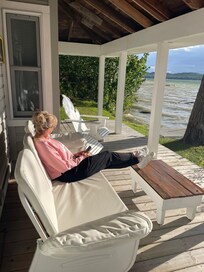 Dieses historische Cottage liegt nur 3 m vom Ufer entfernt und lĂ€dt zu einer kĂŒhlen Seebrise ein. Eine solche NĂ€he ist nicht mehr erlaubt. Die nach Westen ausgerichtete Veranda bietet einen Blick auf magische SonnenuntergĂ€nge, die den Himmel und das Wasser als wechselndes WandgemĂ€lde malen, wĂ€hrend die DĂ€mmerung in sternenklare NĂ€chte fĂ€llt.