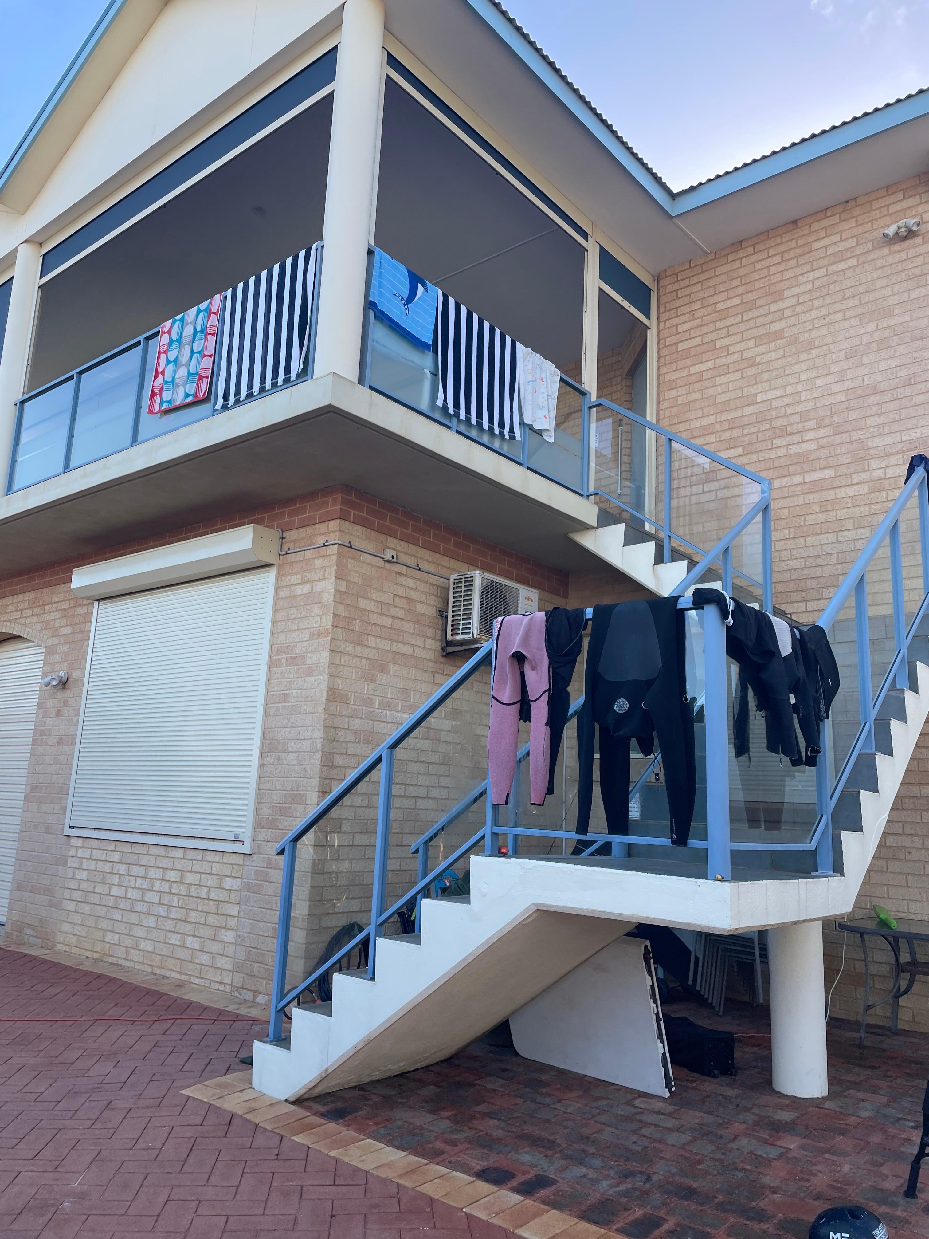 Stayed here for 6 nights with 4 asults and 3 kids. Good size with large bedrooms plenty of storage. Outdoor area at rear is very small and access to the outdoor setting and balcony is not available if owners are using their upstairs accommodation. Note driveway access is narrow so consider this if bringing a boat or trailer. Overall great base for sightseeing. Would happily stay here again.