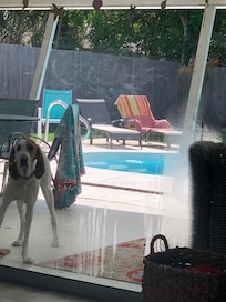 Wir fanden nach unsere Ankunft ein Objekt vor das in keinster Weise den Bildern und der Beschreibung entsprach.Dieses Haus wird offensichtlich nur dazu genutzt um mit null Aufwand maximalen Ertrag zu erzielen.In der komplett mit Müll und Unrat vollgestellten Garage befanden sich eine völlig verklebte Waschmaschine und ein verrosteter Trockner.In diesem befand sich dann die zu benutzende Bettwäsche und einige Handtücher.Den Weg zu diesen Maschinen musste man sich erstmal Freiräumen.Der Master Bedroom bestand aus einem verschmutzten unbezogenem Bett und ebenso völlig verstaubten Schränken.In der Küche war alles komplett verklebt und schmutzig,an die Zubereitung einer Mahlzeit war nicht zu denken.Auf der Terrasse lag verstreut Kinderspielzeug in rauen Mengen, dieses hatte aber auch schon bessere Tage gesehen.Der Grill war aus hygienischen Gründen unbenutzbar, das komplette Terassenmobiliar war sehr alt und teilweise extrem verschmutzt.Die Terassentüren waren insgesamt so vergammelt das diese sich nur mit erheblichem Kraftaufwand öffnen und schließen lassen.Im gesamten Haus ging bei komplett geschlossenen Fenstern und Türen ein permanenter Luftzug da sämtliche Türen und Fenster undicht waren.Dieses hatte wahrscheinlich zur Folge das sich im gesamten Haus ein muffig moderiger Geruch ausgebreitet hat und sich in der Küche eine Ameisenkolonie ausgebreitet hat.Ein renoviertes Badezimmer stand einem anderen gegenüber das in kleinster Weise irgendwelchen Standards entsprach.