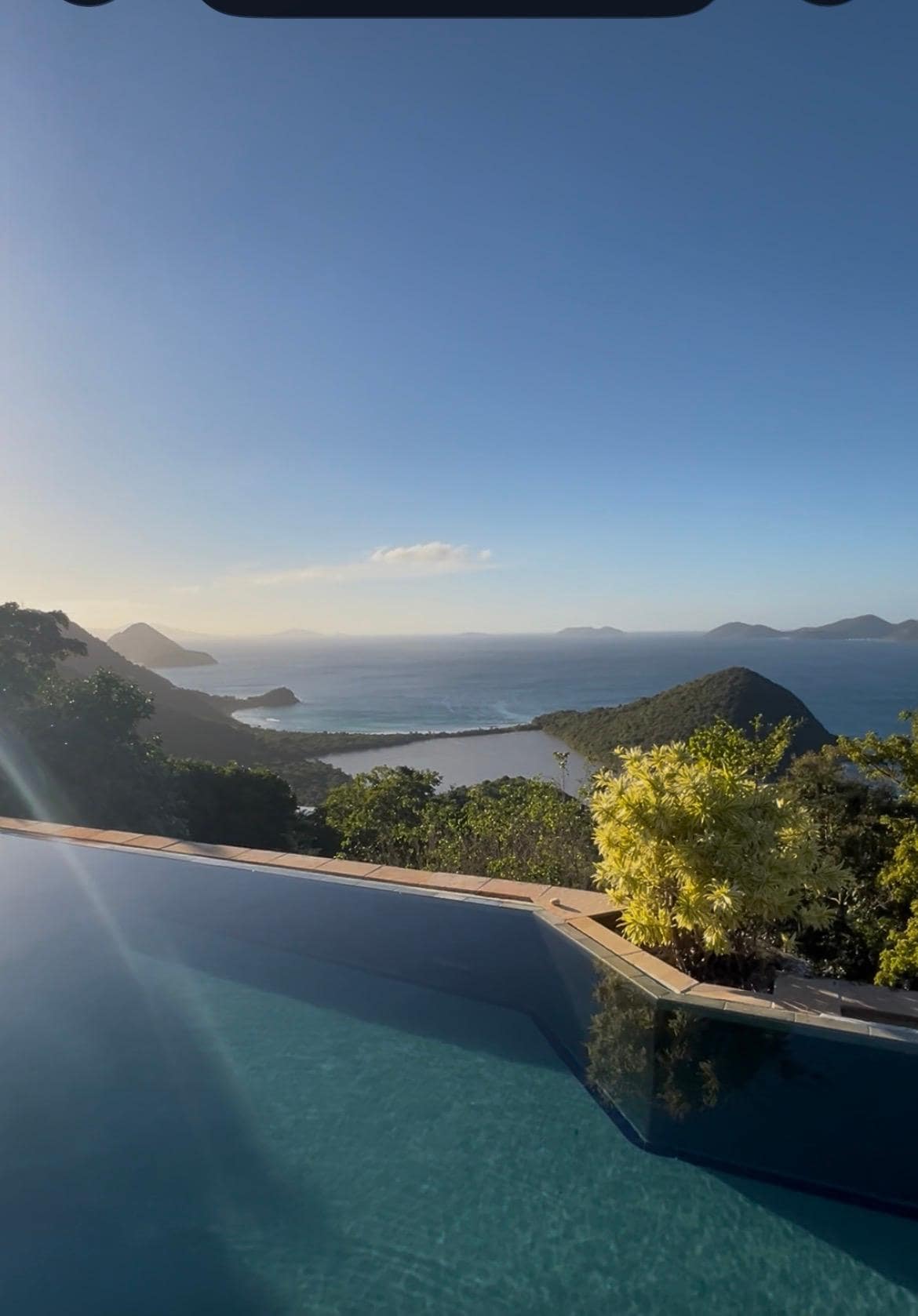 Die Villa verfügt über eine große Auffahrt, in die Sie durch ein Holztor einsteigen können. Der atemberaubende Pool und das Deck im Inneren des Tors laden zum Verweilen bei einem guten Buch und einem Cocktail ein. Bewundern Sie die eleganten Segelyachten oder die eleganten Motorboote auf dem Meer vor Ihnen. Der Hauptwohnbereich befindet sich auf der Veranda neben dem Pool und besteht aus üppig gepolsterten, übergroßen Möbeln und verschiedenen Sitzgruppen unter einem hohen, geschindelten, runden Dach.