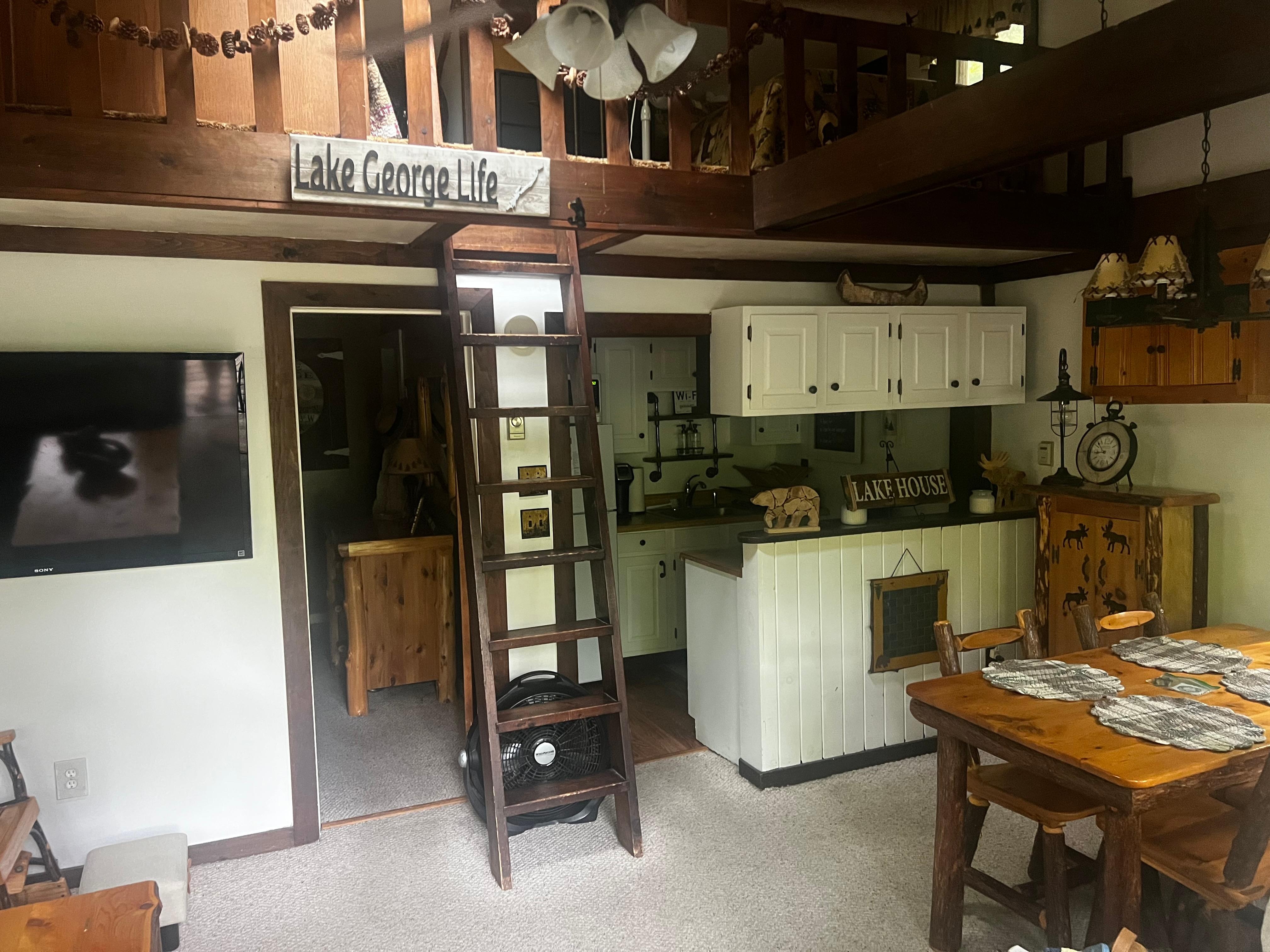 Perfektes Ferienhaus fĂŒr Ihren Aufenthalt in Lake George. Eine Zehntelmeile vom nĂ€chsten Strand entfernt. Das Hotel liegt im malerischen Bolton Landing etwas auĂerhalb des Lake George Village. GroĂe Terrasse mit Pavillon und Kabel, um das Leben im Freien zu genieĂen. Gasgrill, Feuerstelle, HandtĂŒcher, BettwĂ€sche, LiegestĂŒhle inklusive. Klimaanlage fĂŒr die wĂ€rmeren Tage. 1 Schlafzimmer und ein Loft fĂŒr 4 Personen. Schlafmöglichkeiten fĂŒr 6 Personen