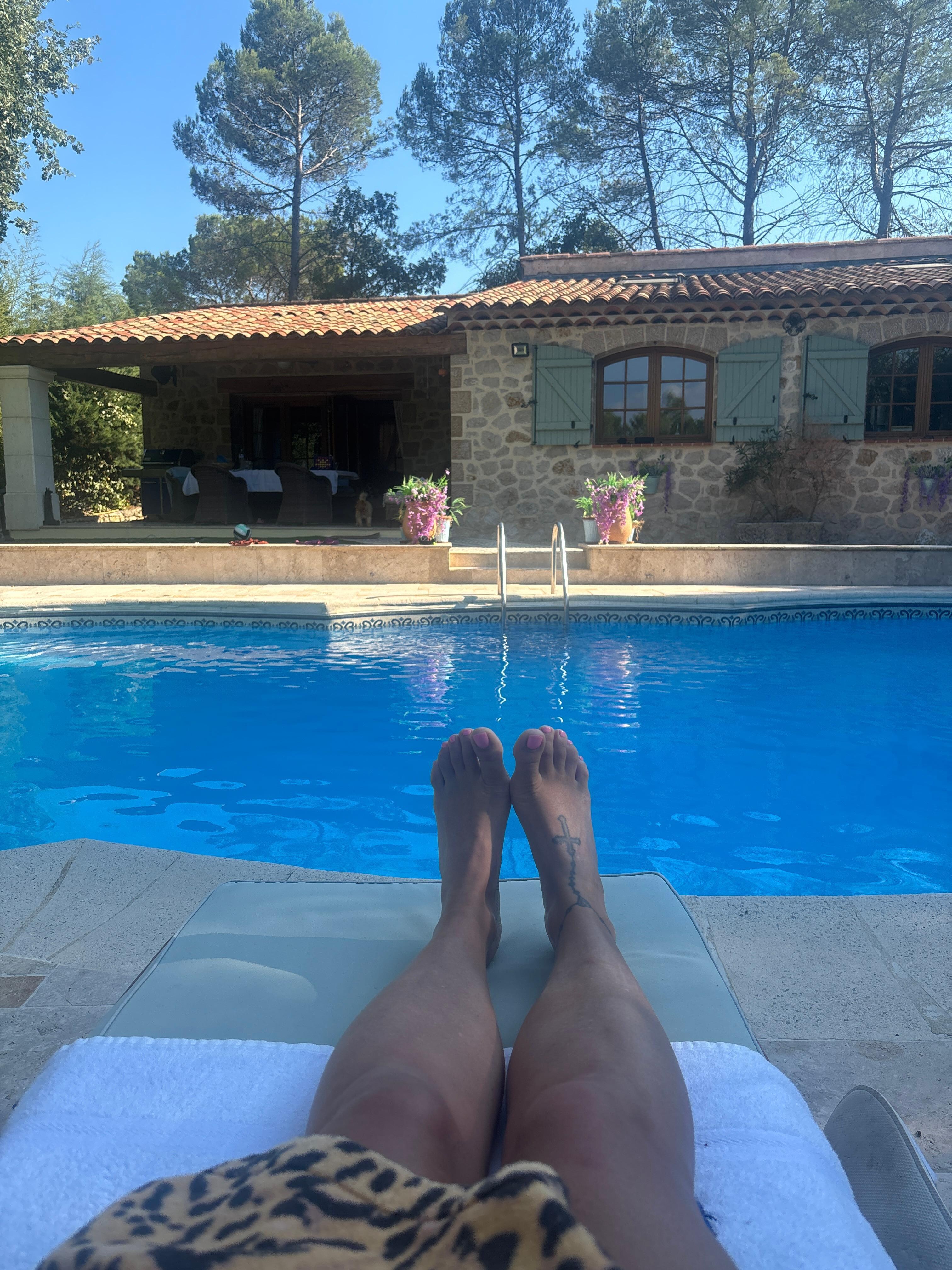 Der Pool ist beleuchtet und es gibt viel Außenbeleuchtung.