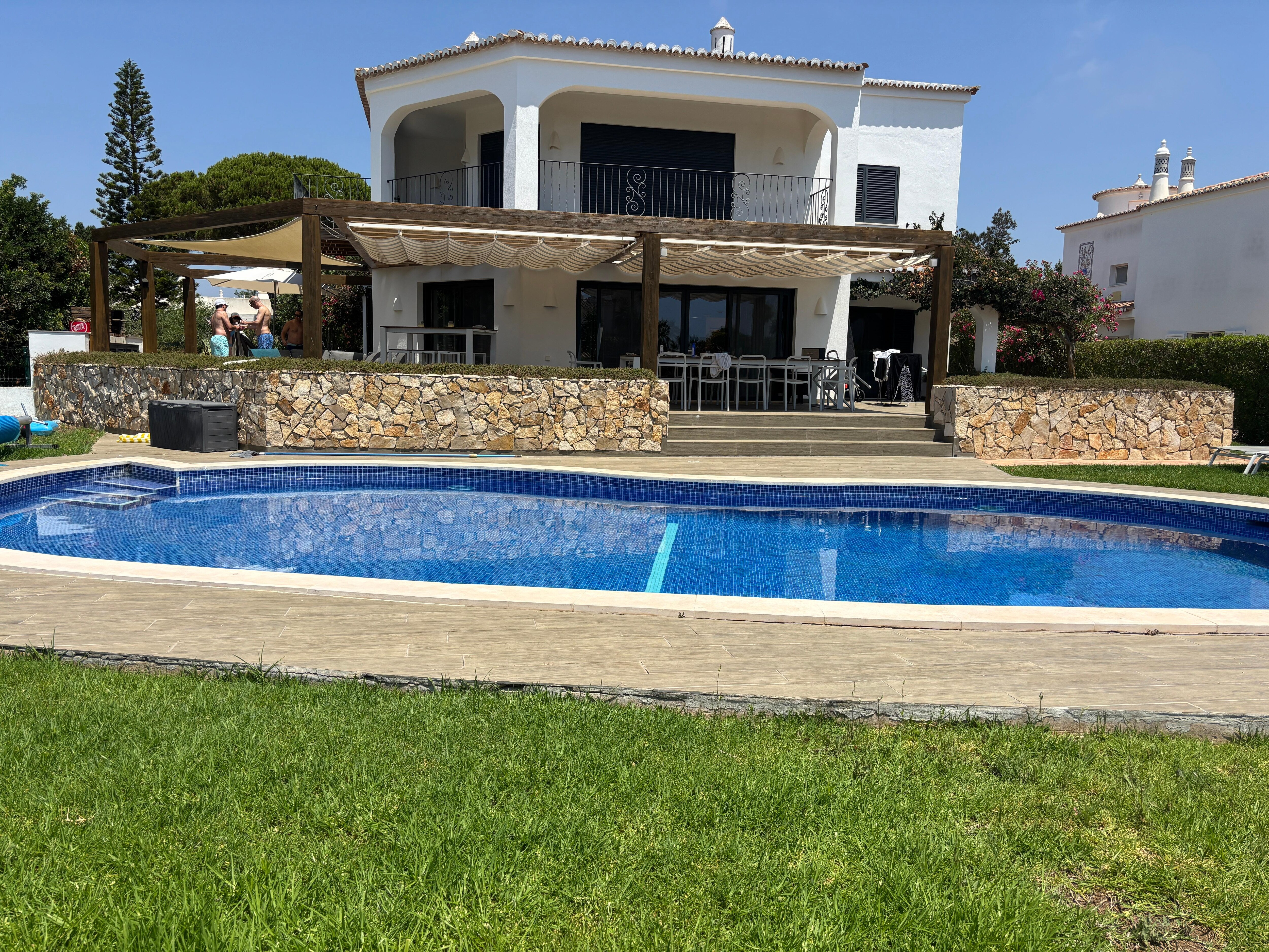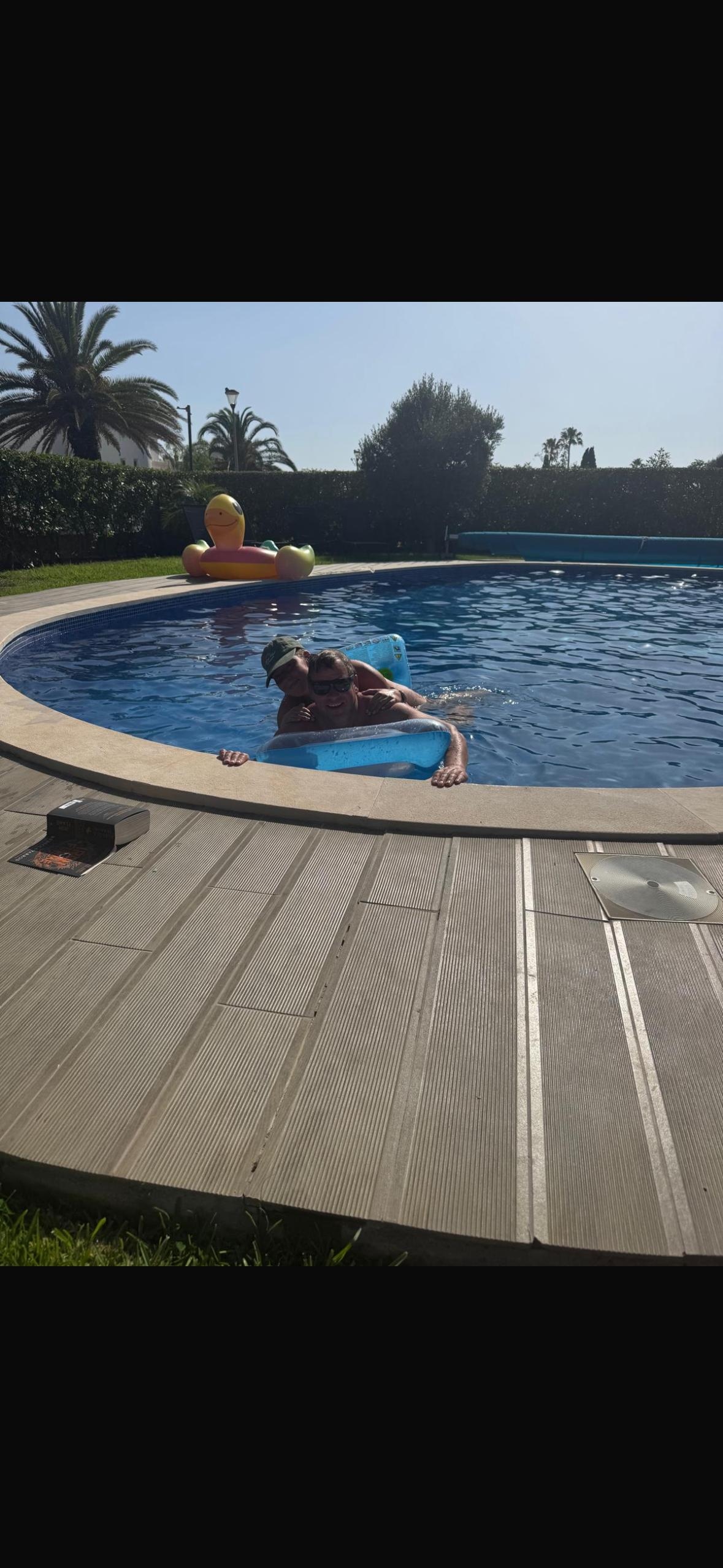Auf der Südseite, direkt auf der Terrasse, befindet sich ein großes Schwimmbad (8x4 m), in dem Sie zu jeder Tageszeit baden können. Der Pool hat eine unterschiedliche Tiefe, wo Sie leicht auf einer Seite stehen können (ca. 1 m tief), während die Tiefe auf der anderen Seite ca. 2,1 m beträgt.