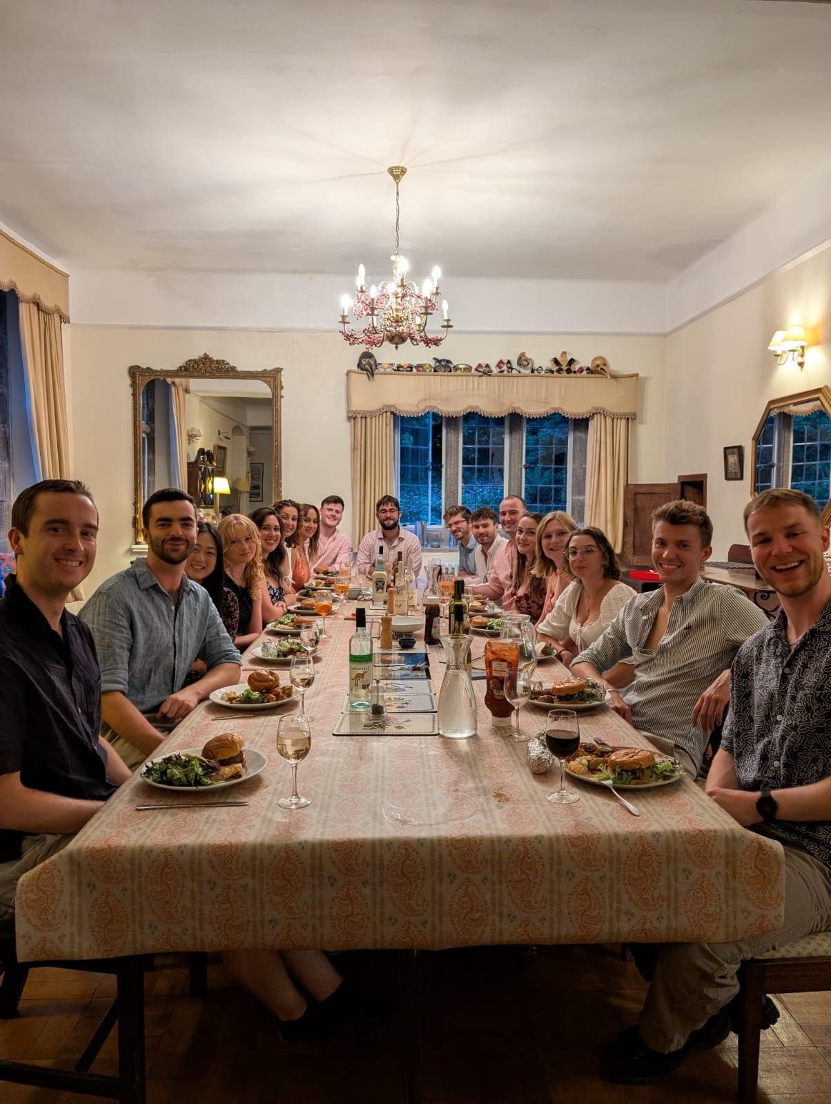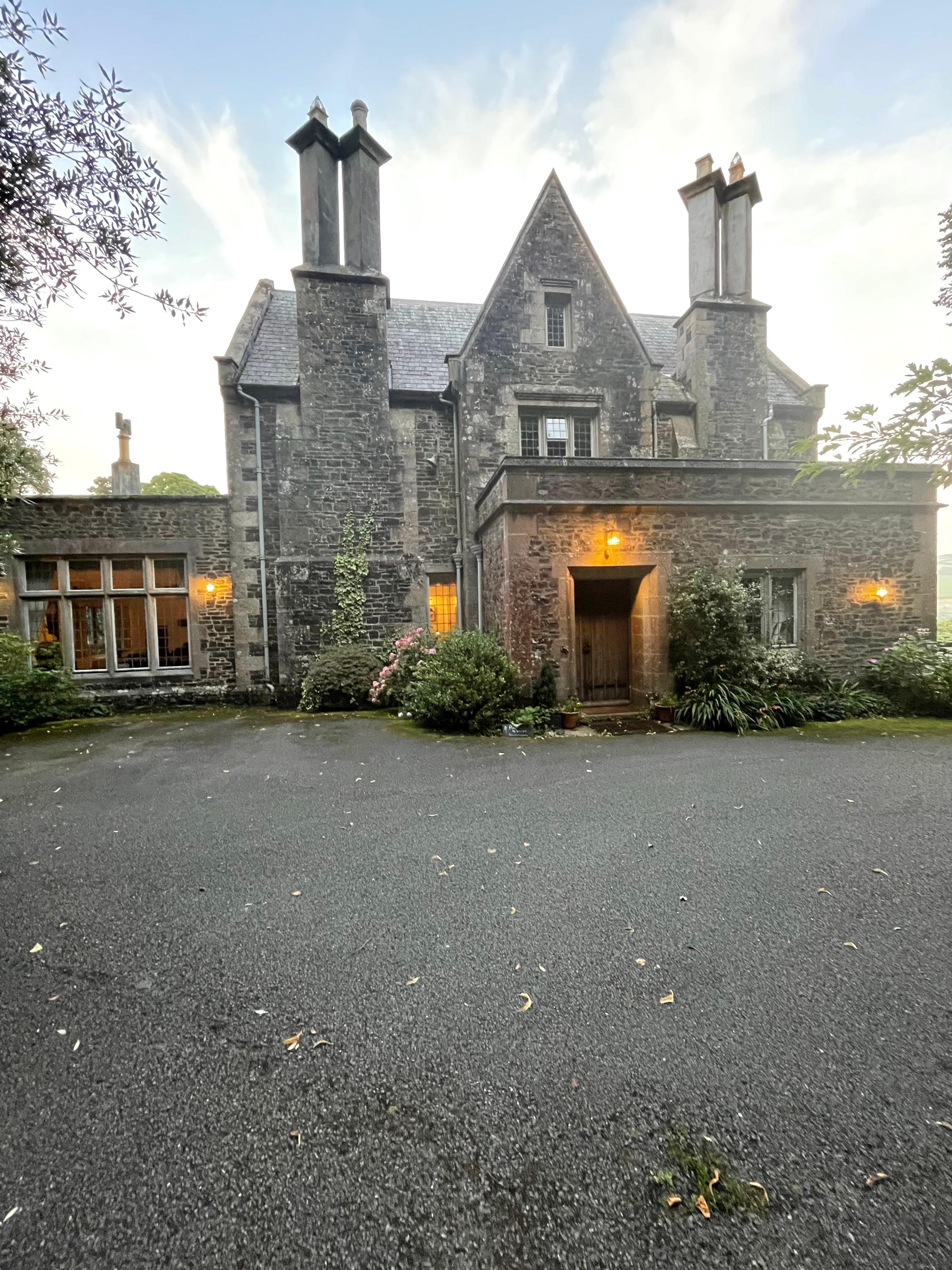 Das Haus verfügt über schöne antike Möbel, Gemälde und originale Elemente (Bleiglasfenster und Kamine), die zu seinem Stil und Alter passen. Die verzierte Vordertür hat einen funktionierenden Glockenzug und große Schrauben. In der Tür befindet sich eine mit Steinfliesen versehene Eingangshalle mit viel Platz für Gummistiefel, Spazierstöcke und Hundebetten. Außerdem gibt es ein großes Klo mit herrlicher Aussicht (und Sie müssen Ihre Wanderschuhe nicht ausziehen!). Der Speisesaal ist ein wunderbarer Ort, um Freunde und Familie zusammen zu bringen: Er ist 40 'lang mit einem großen Esstisch an einem Ende, der erweitert oder verkleinert werden kann, und von meiner Ururgroßmutter genähte Stühle mit Gobelinstühlen. Das offene Feuer bietet bequeme Sitzgelegenheiten in einem großen Knole-Sofa und tiefen Sesseln. Die Beleuchtung besteht aus zwei großen Kronleuchtern und vielen, dezenteren Seitenleuchten, die alle in riesigen Spiegeln reflektiert werden. Es hat Holzparkett und ein langer Fensterplatz fängt die Nachmittagssonne ein. Zwei Türen und eine Luke führen vom Esszimmer in die mit Schieferplatten ausgestattete Küche mit 4 Herden AGA, Elektroherd (Backofen, Grill und Kochfeld), doppelte Belfast-Spülen (beide groß genug für große AGA-Pfannen), zwei Geschirrspüler, großer Kühlschrank, tiefgefrieren und TV. Der Küchentisch bietet bequem Platz für 10 Personen.
