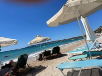 We had 5 great nights in this property. It is of a high standard compared to a lot of Greek studios. The kitchen has everything we needed, plenty of space for clothes, air con was cold and water was always hot! The location is second to none, you can be the first and/or last on the beach and pop back to the property when you need to! Good tavernas nearby.