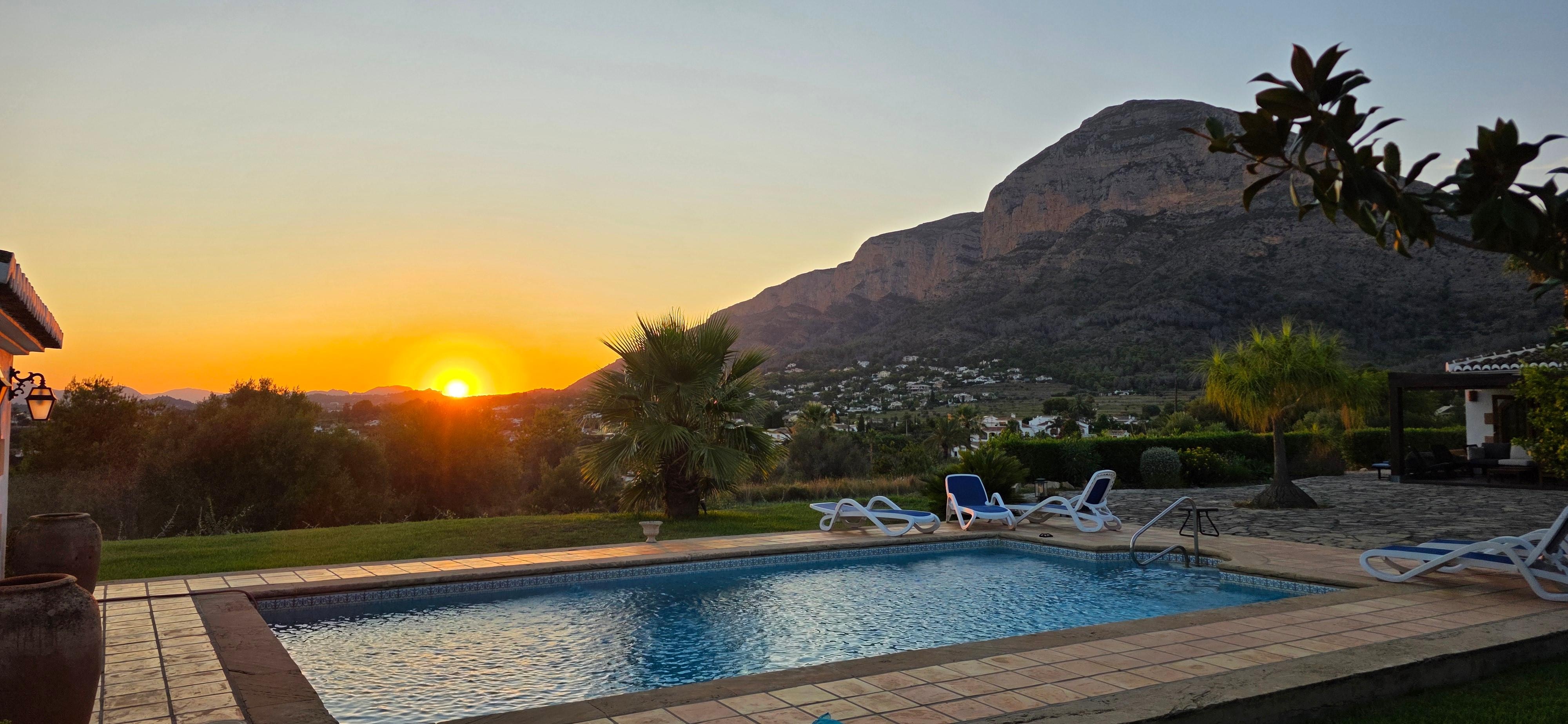 Sie haben einen herrlichen Blick auf die umliegenden Hügel und den Montgo (Elefantenberg).