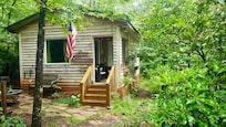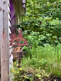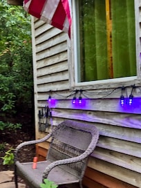The small porch is where you will spend relaxing time watching the birds and listening to all things in nature surrounding. You can hear the world beyond every once in a while and that makes this cozy place all the more special.