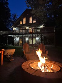 Indoor-Gaskamin, 2 Satellitenfernsehen, Telefon, Mikrowelle, voll ausgestattete Küche, Brettspiele, Gasgrill, Waschmaschine und Trockner, zwei Docks an verschiedenen Flussabschnitten, zwei Feuerstellen, Brennholz zum Kauf für 10 USD / Schubkarre, Zedernwiese und Liegemöbel. High-Speed-Internet.
