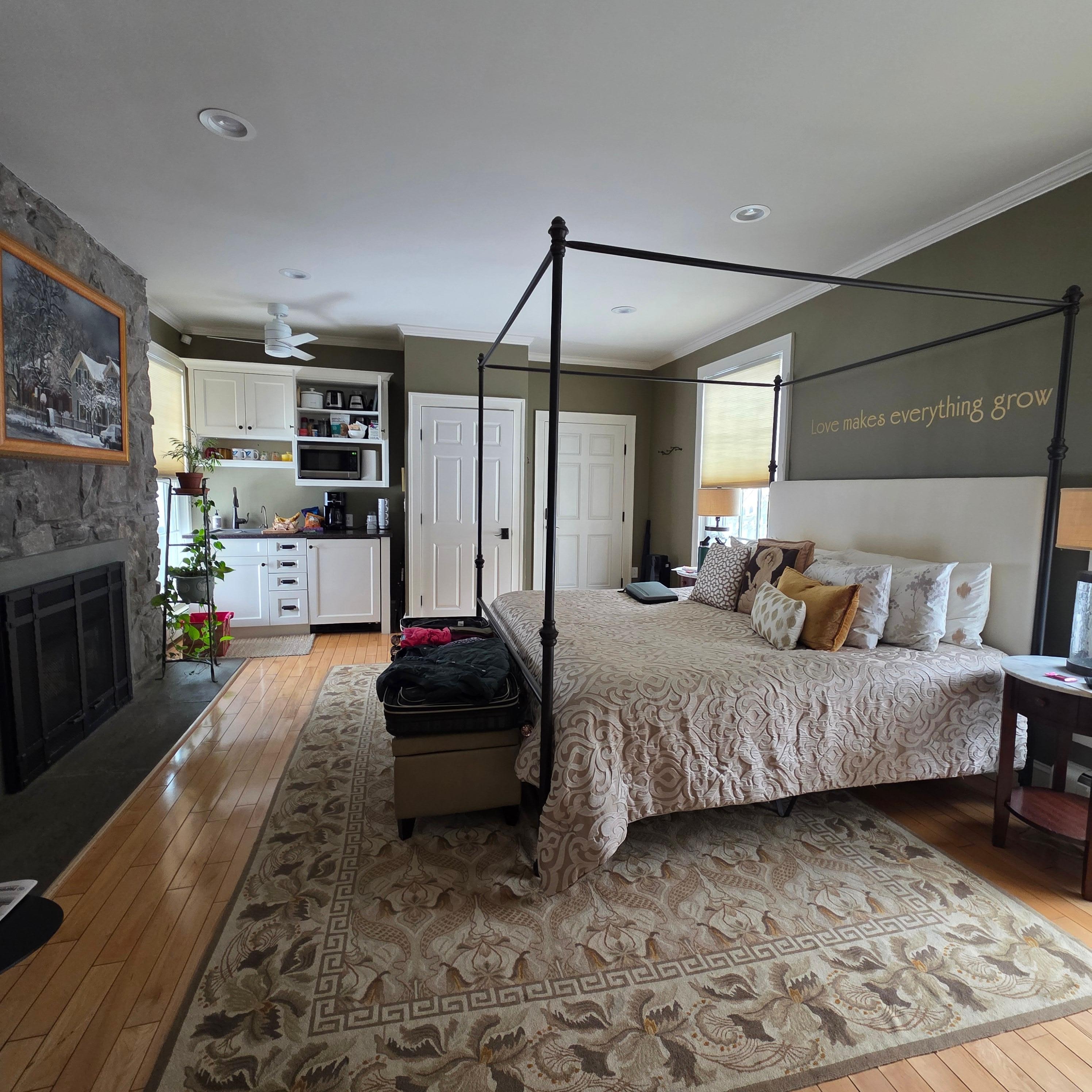 Eingebettet in Burlington Hill Section, The Garden Studio bietet Komfort und Eleganz für die Gäste, die das Kingsize-Bett und Kamin genießen.