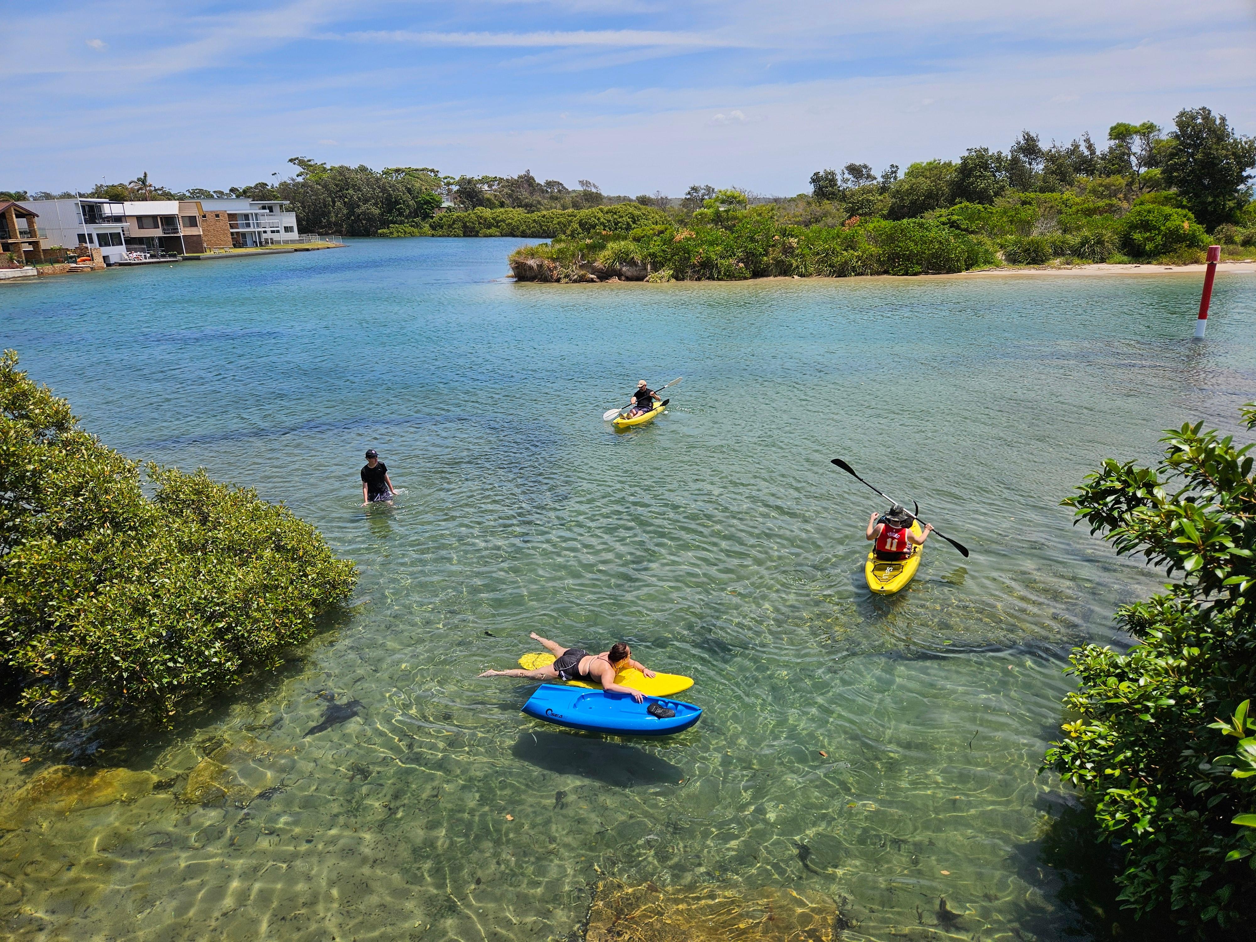 Das Crescent ist ein Strandhaus am Ufer des Currarong Creek. Bei Flut können Sie buchstäblich vor der Haustür schwimmen oder den Kindern beim Spielen im Sand vom erhöhten Deck zusehen. Crescent ist ein perfektes Urlaubsdomizil für zwei Familien oder eine große Familie.