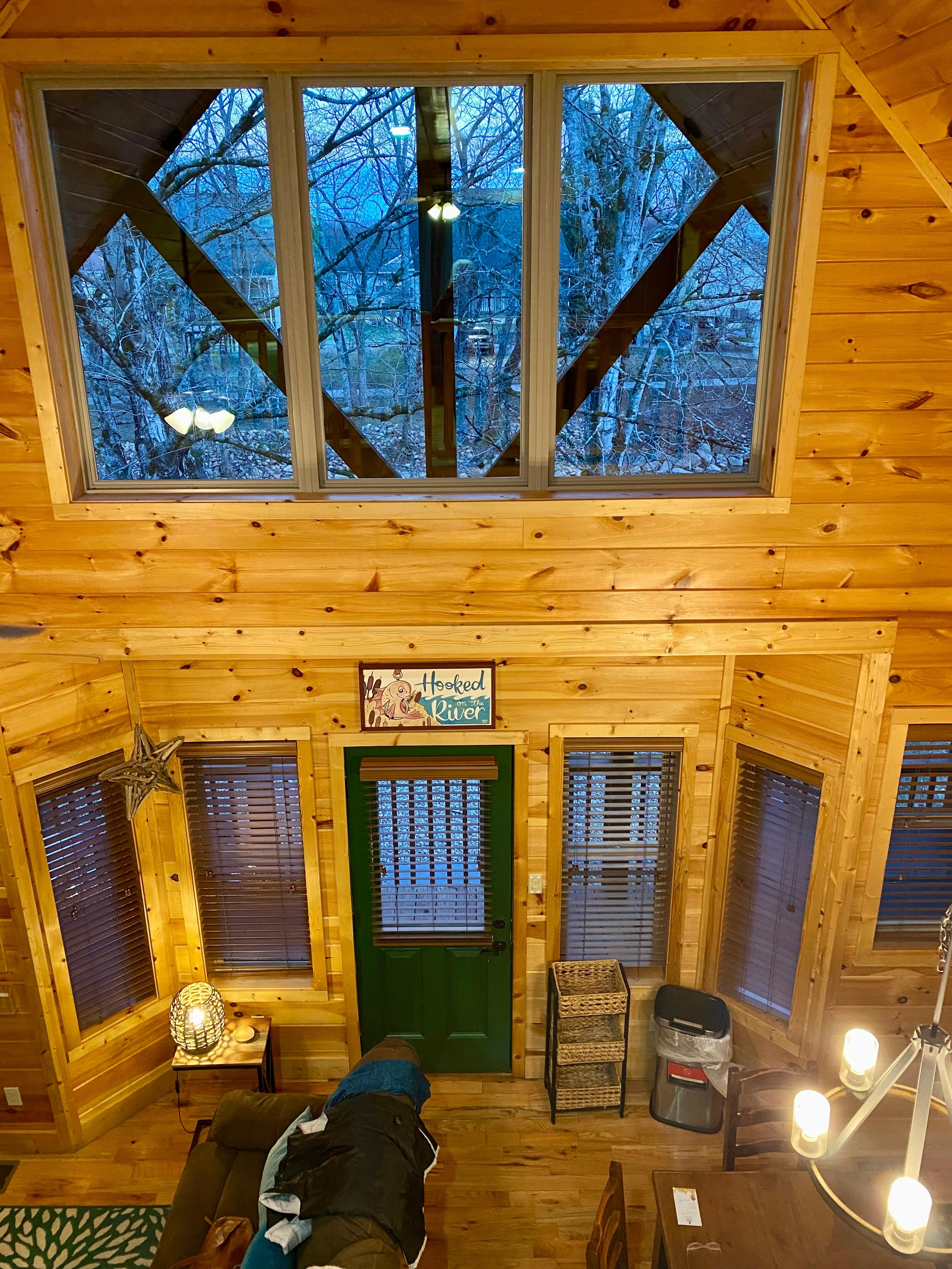 Diese HĂŒtte liegt am Little Pigeon River. Durch die vielen Panoramafenster haben Sie das GefĂŒhl, auf dem Fluss zu schweben. Durch die schönen AhornbĂ€ume im Hinterhof der HĂŒtte fĂŒhlt sich die Veranda wie in einem Baumhaus an. HOOKED ON THE RIVER wurde mit einem eleganten rustikalen Flussmotiv dekoriert. Jedes MöbelstĂŒck wurde nach Komfort und Stil ausgewĂ€hlt. Panoramafenster wurden hinzugefĂŒgt, um die herrliche Aussicht und das natĂŒrliche Licht einzufangen. Die HĂŒtte ist eine brandneue HĂŒtte am Fluss. Es bietet bequem Platz fĂŒr 6 Personen und verfĂŒgt ĂŒber ein Hauptschlafzimmer auf der Hauptebene mit einem Kingsize-Bett und ein groĂes Loft-Schlafzimmer mit einem Queensize-Bett und zwei Einzelbetten. Die Aussicht vom Dachboden wird Ihnen den Atem rauben. Beide Schlafzimmer sind im Notfall mit Sicherheitsleitern ausgestattet. Es gibt zwei Badezimmer, eines auf jeder Ebene. Die KĂŒche ist komplett ausgestattet, um eine feine Mahlzeit zuzubereiten, und der Esstisch bietet bequem Platz fĂŒr 6 Personen. Die Couch im Wohnzimmer ist bequem und ideal, um auf dem 55-Zoll-Flachbildfernseher fernzusehen. Die hintere Veranda wurde fĂŒr Entspannung und Komfort eingerichtet. Den Whirlpool mit dem Rauschen des Flusses und der Vielfalt der Vögel, die in der Gegend leben, zu genieĂen, ist ein entspannender Genuss. Die Feuerstelle neben dem Fluss ist ein groĂartiger Ort, um den Tag zu beenden, wĂ€hrend Sie in einer kĂŒhlen Nacht Marshmallows rösten und heiĂe Schokolade trinken. Im Hinterhof neben dem Fluss befindet sich ein Gasgrill mit einem Picknicktisch, an dem Ihre Familie im Freien speisen oder einfach nur sitzen und entspannen kann. In der HĂ€ngematte neben dem Fluss können Sie wunderbar entspannen und Ihr Lieblingsbuch lesen. Vergessen Sie nicht, Ihre AngelausrĂŒstung mitzubringen.