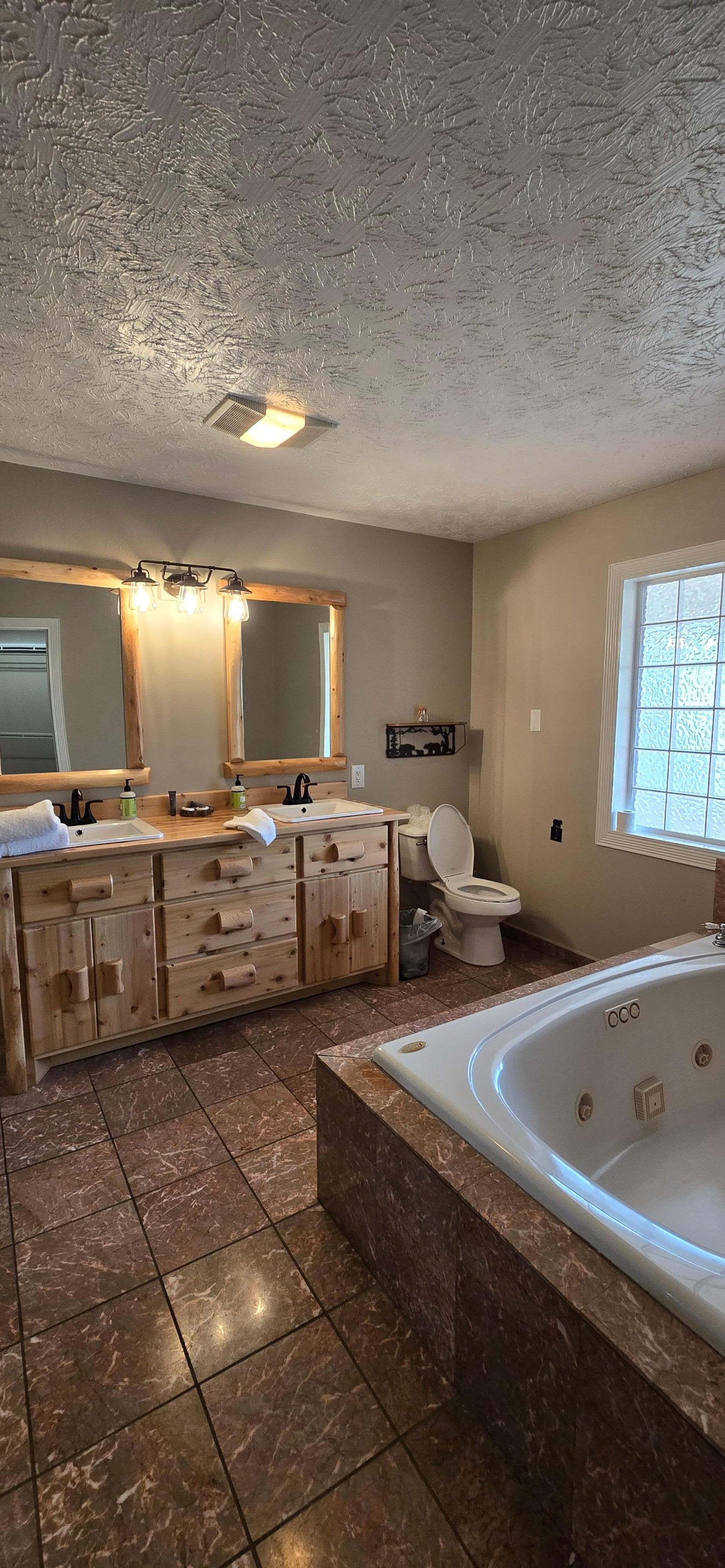 Our stay was very enjoyable and easy to access. The home had starter things available to us for our stay. The furniture and bedding was very comfortable. The jet tub was nice after a long day. We had a few issues with the TV's not working during our stay as well as our garbage disposable stopped working during our stay which ended up making the dishwasher not drain for the load we had to do due to the sink not being available. Overall the stay was nice just a few things that we had to work around for our stay.