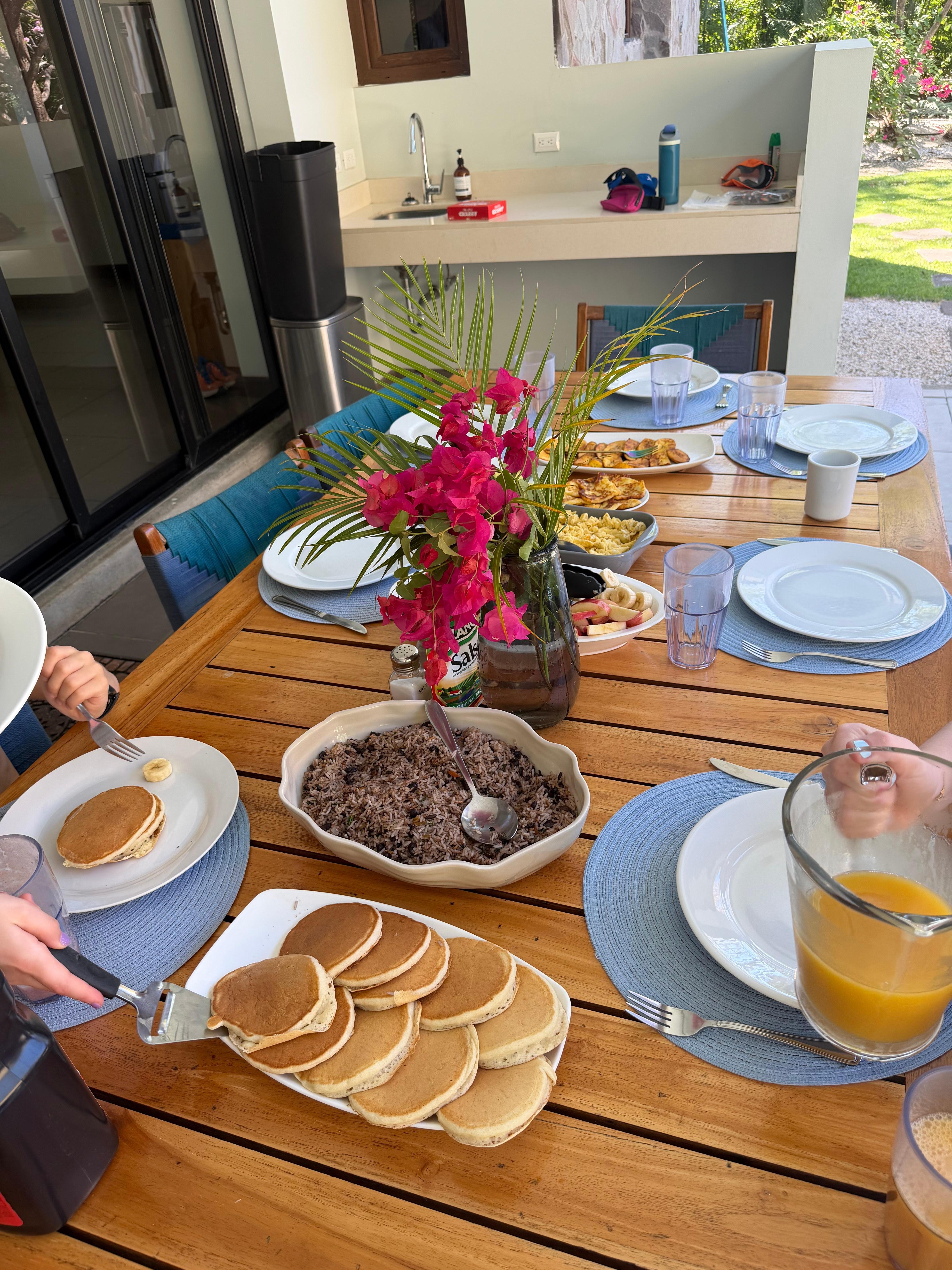 Spent one week in this slice of heaven with 10 family members (2 families of 4 and my parents). Elsa, the concierge, was amazing and so communicative before our stay and throughout our stay and handled any issues immediately. She planned all of our excursions for us (river rafting and private all day catamaran boat) and both were amazing! She also connected us to the private chef who prepared our dinner most nights. Annika, the house mom, made delicious breakfast every morning and kept the home super clean. The outside area is incredible for large families and kids and has a huge shaded area which we appreciated in the 90 degree plus heat! Our only complaint would be that two of the bedroom bathrooms have a hand held shower head that you literally have to hold when showering- they do have a holder for them but the water shoots out too far it wasn’t really usable. Not a huge problem since we had four other showers, but would have been nice to know. If you’re a large group looking for concierge service in a beautiful area- this trip is for you! Thank you so much Elsa for everything!