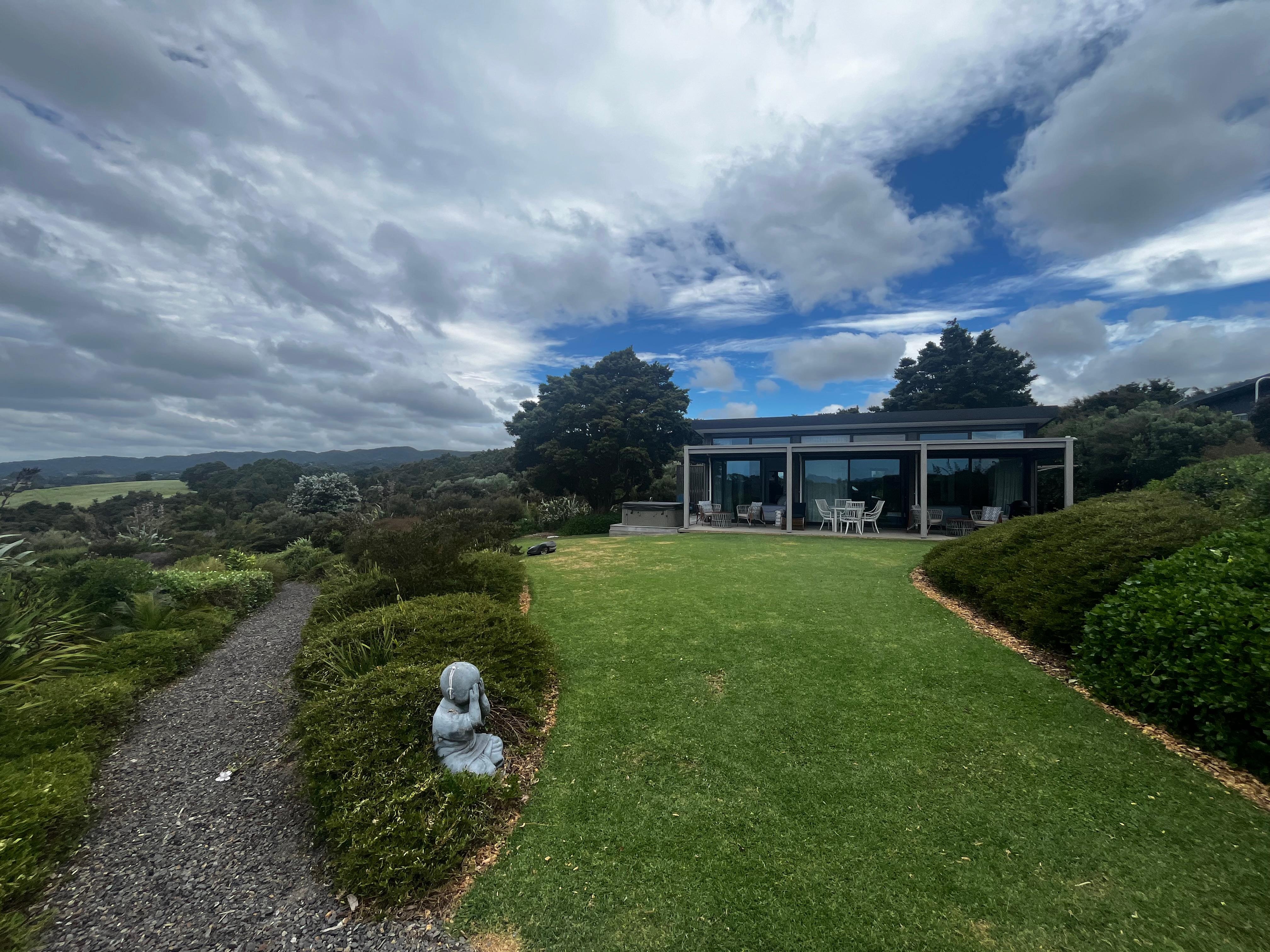 With rural and sea views, on the hill between Waipu Cove and Langs Beach, our private guest house is an ideal place to rest and restore. A spa on the patio, with access to a large garden and a labyrinth path, a 12m pool, a gym, 3 hectares of bush walks, swimming hole, and a few minutes drive to beaches it has all the options for a wonderful holiday. It is 2 mins drive to the The Cove Restaurant, 10 mins to Waipu town, with cafes and museum and 15 mins to Mangawhai with cafes and markets.