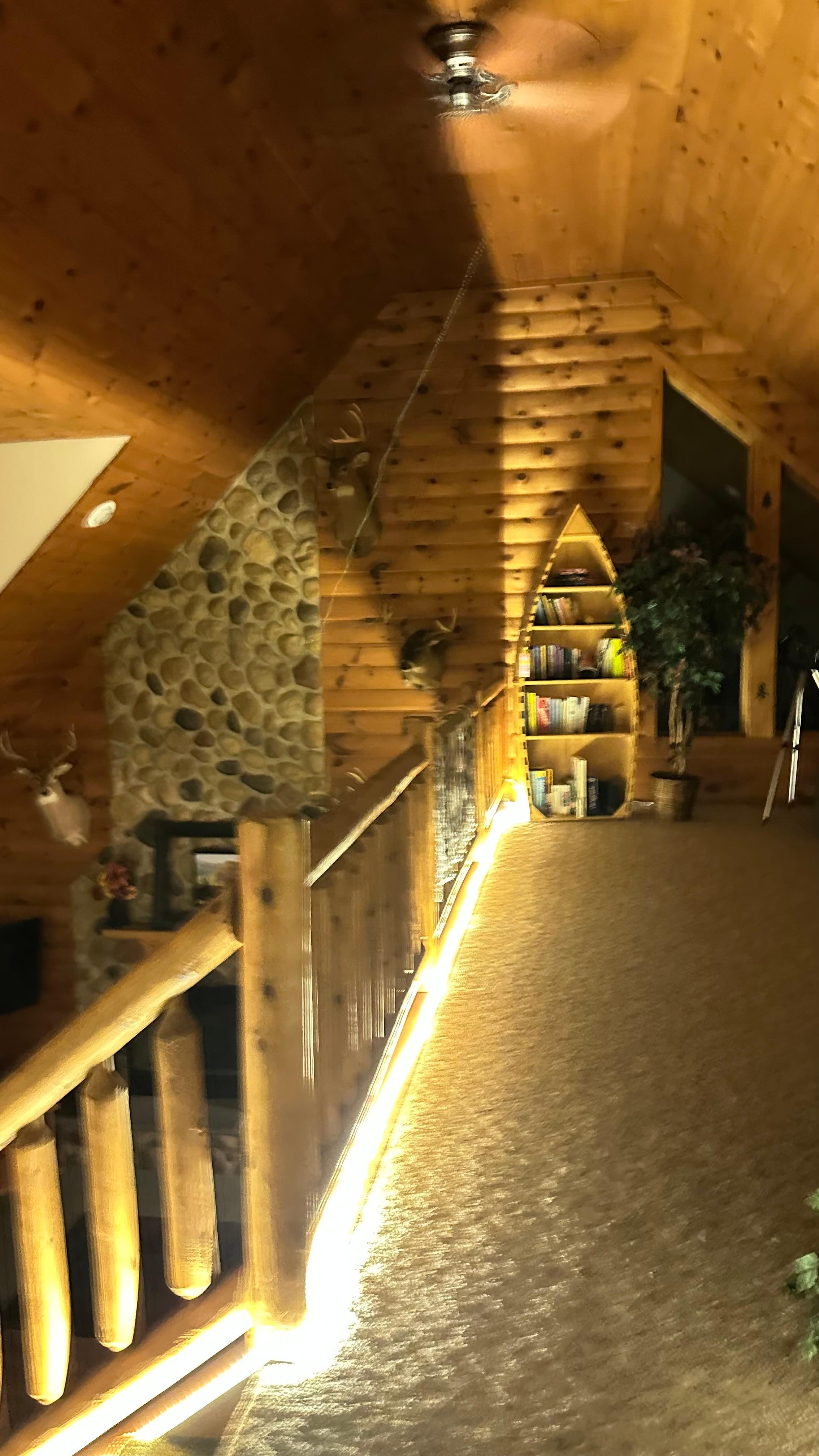 INDOOR LIVING: Open concept interior, fireplace, ping-pong table, dining table, 2 cable TVs, dartboard, board games, loft reading area, telescope, en-suite bathroom w/ soaking tub
