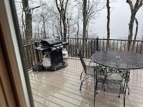 OUTDOOR LIVING: Deck w/ dining table & gas grill, mountain & forest views, private yard