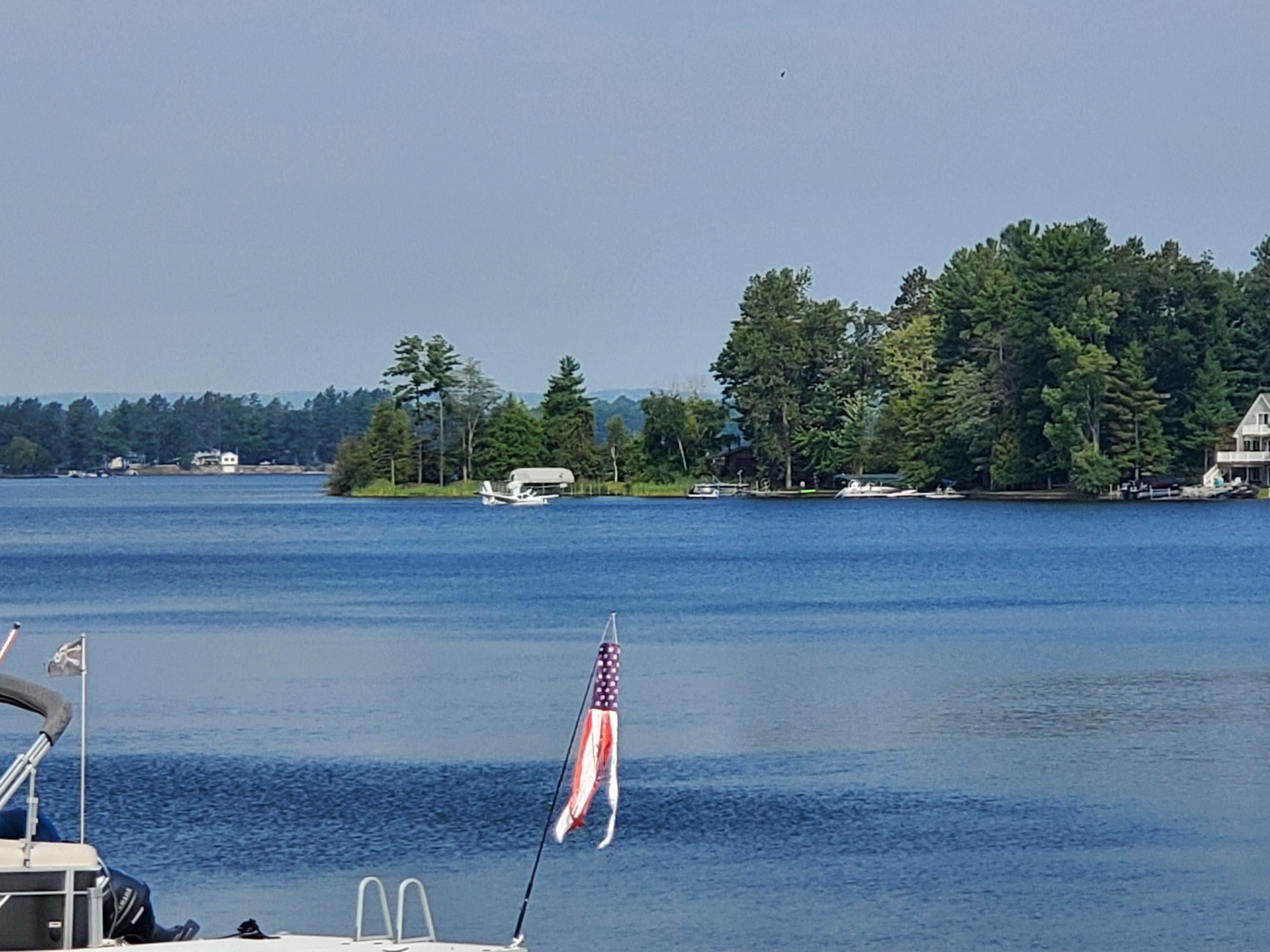OUTDOOR LIVING: Boat dock, deck, gas grill, kayaks w/ paddles, dining area, life vests, Aqua Lily Pad, beach chairs, lakefront views, snowmobiling nearby