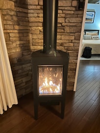 INDOOR LIVING: Sonos speaker, board games, gas-burning stove, dining table, bathroom w/ heated floor