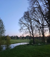 A serene Southwest Washington escape awaits at this calm Chehalis vacation rental. This dog-friendly 3-bedroom, 1-bathroom home boasts a bright and modern interior, a beautiful golf course view from the patio, and plenty of parking space for both cars and trailers! Take a day trip to Mount St. Helens, hike along the Willapa Hills Trail with your furry friend, or stay home and enjoy playing some foosball inside. End the day stargazing by the fire pit in the tree-lined backyard.