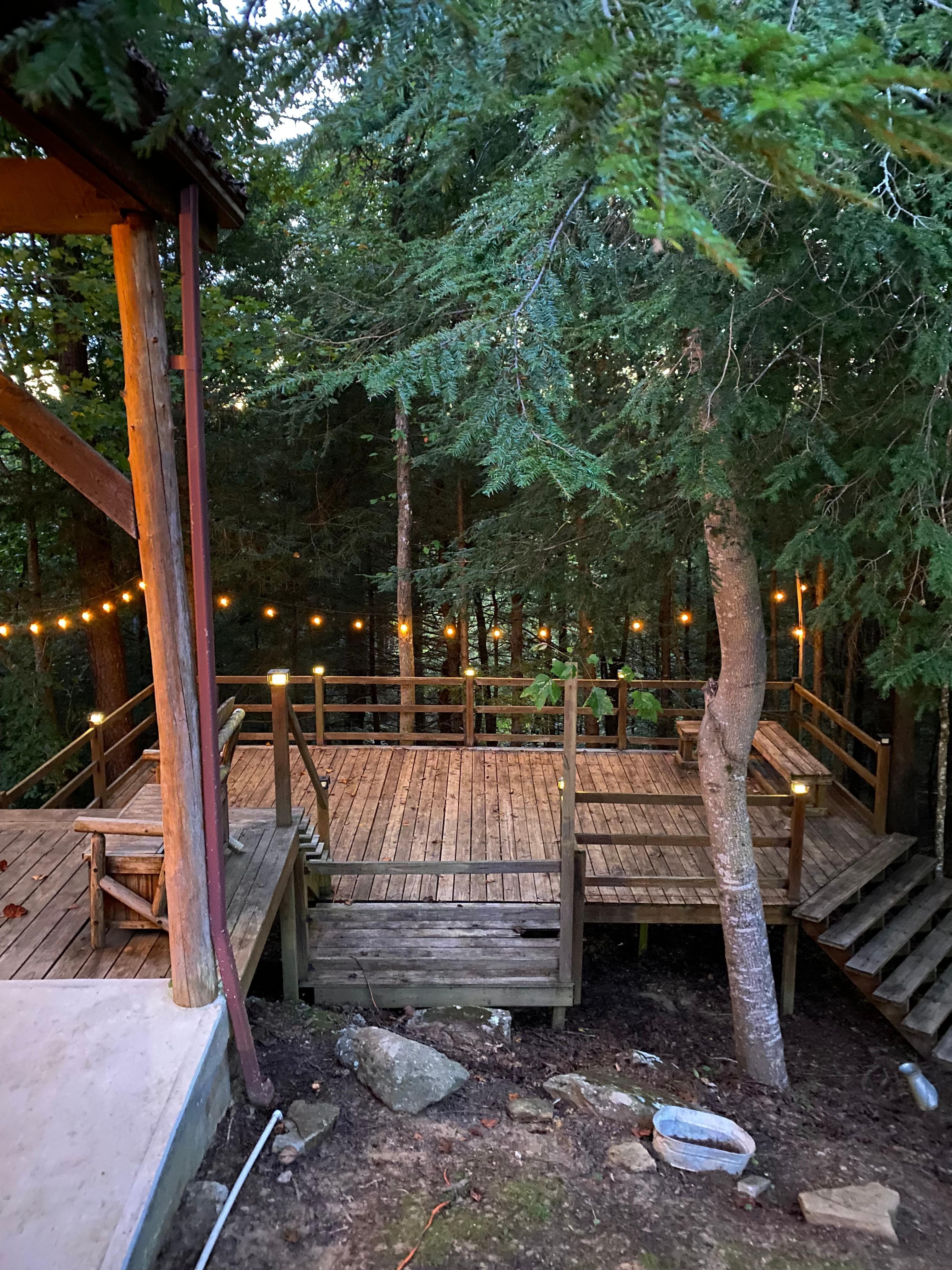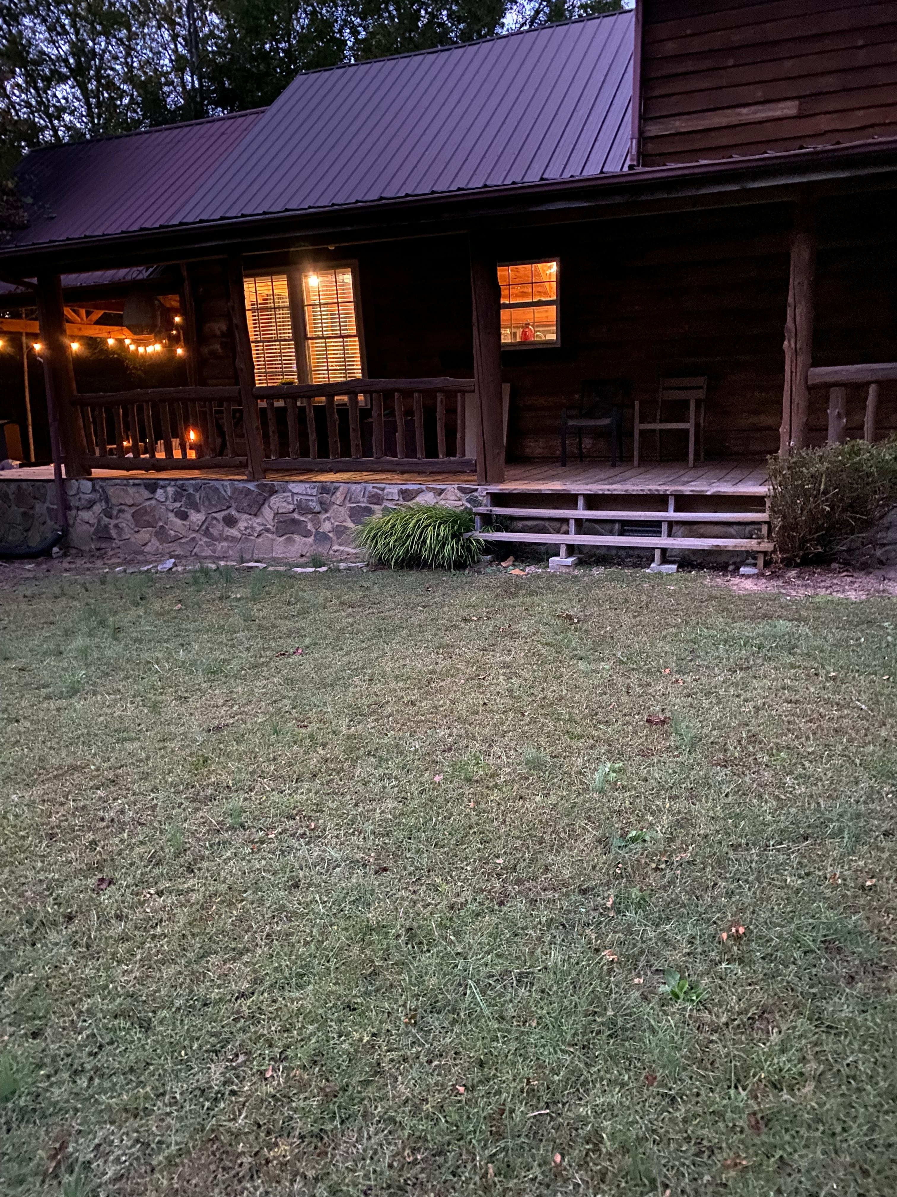FAQ: Stairs to enter, 2 bedrooms/1 full bathroom on 1st floor, 3 exterior security cameras (facing out), winding roads & steep driveway, rustic & wooded cabin