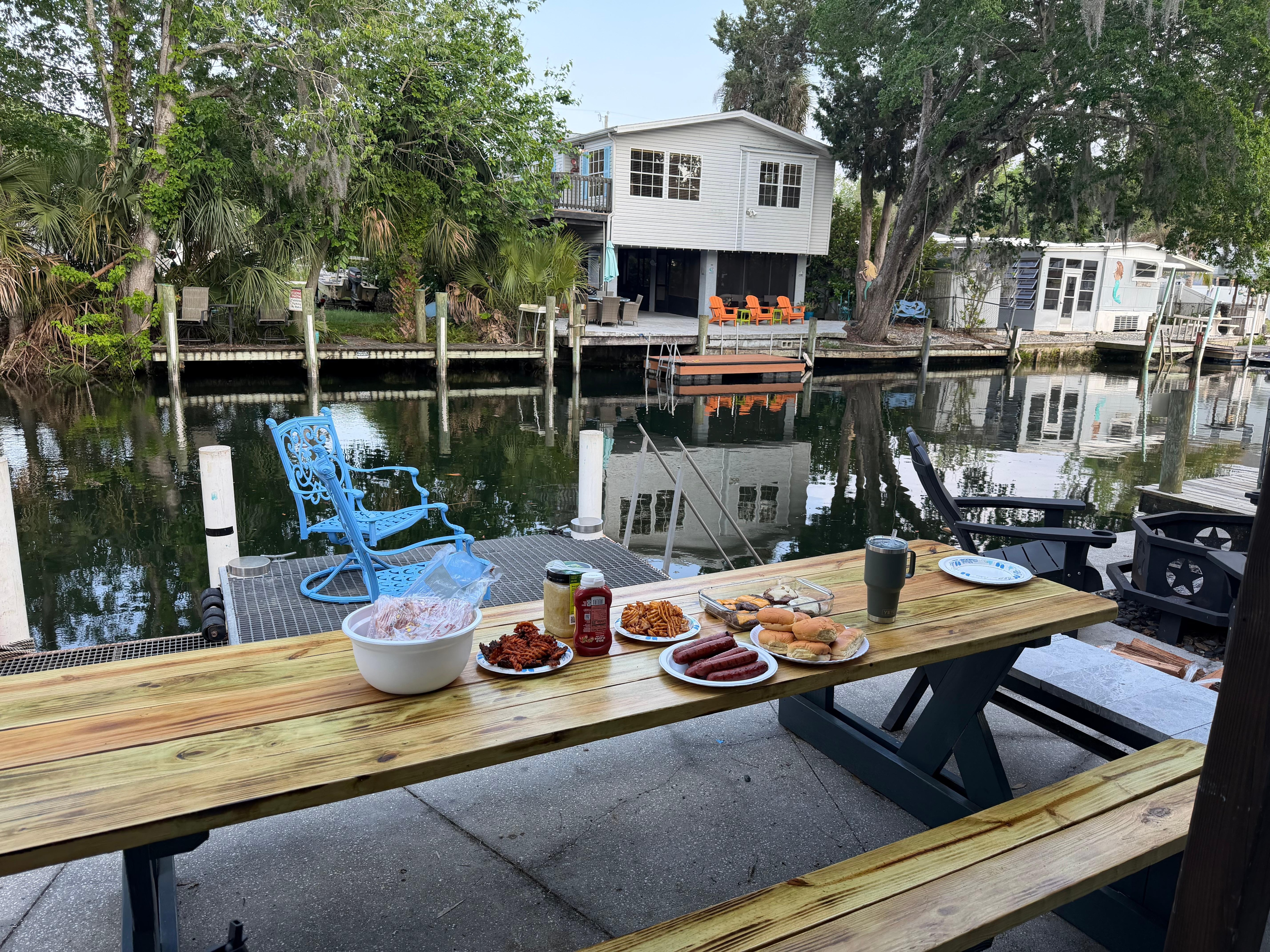 OUTDOOR HIGHLIGHTS - Balcony & patio w/ beautiful canal views - Boat dock - 5 youth kayaks, 15 adult kayaks, 2 paddleboards - Life jackets, floaties, noodles - Beach towels, chairs & other gear - Picnic table, additional seating, gas grill - Fire pit - Bicycles, basketball hoop