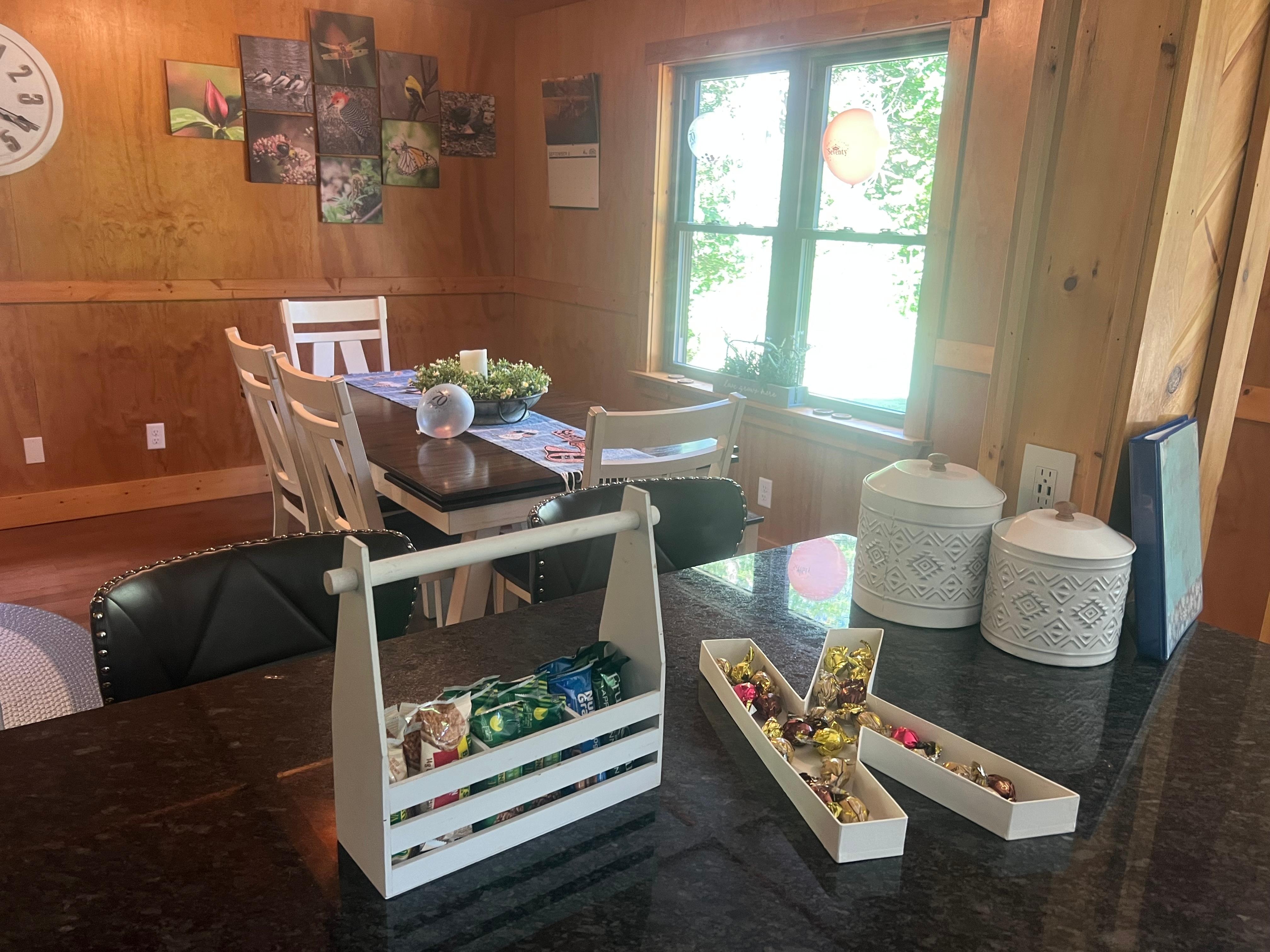 INDOOR LIVING: Smart TVs, dining table, breakfast bar, high chair, board games, books, ceiling fans