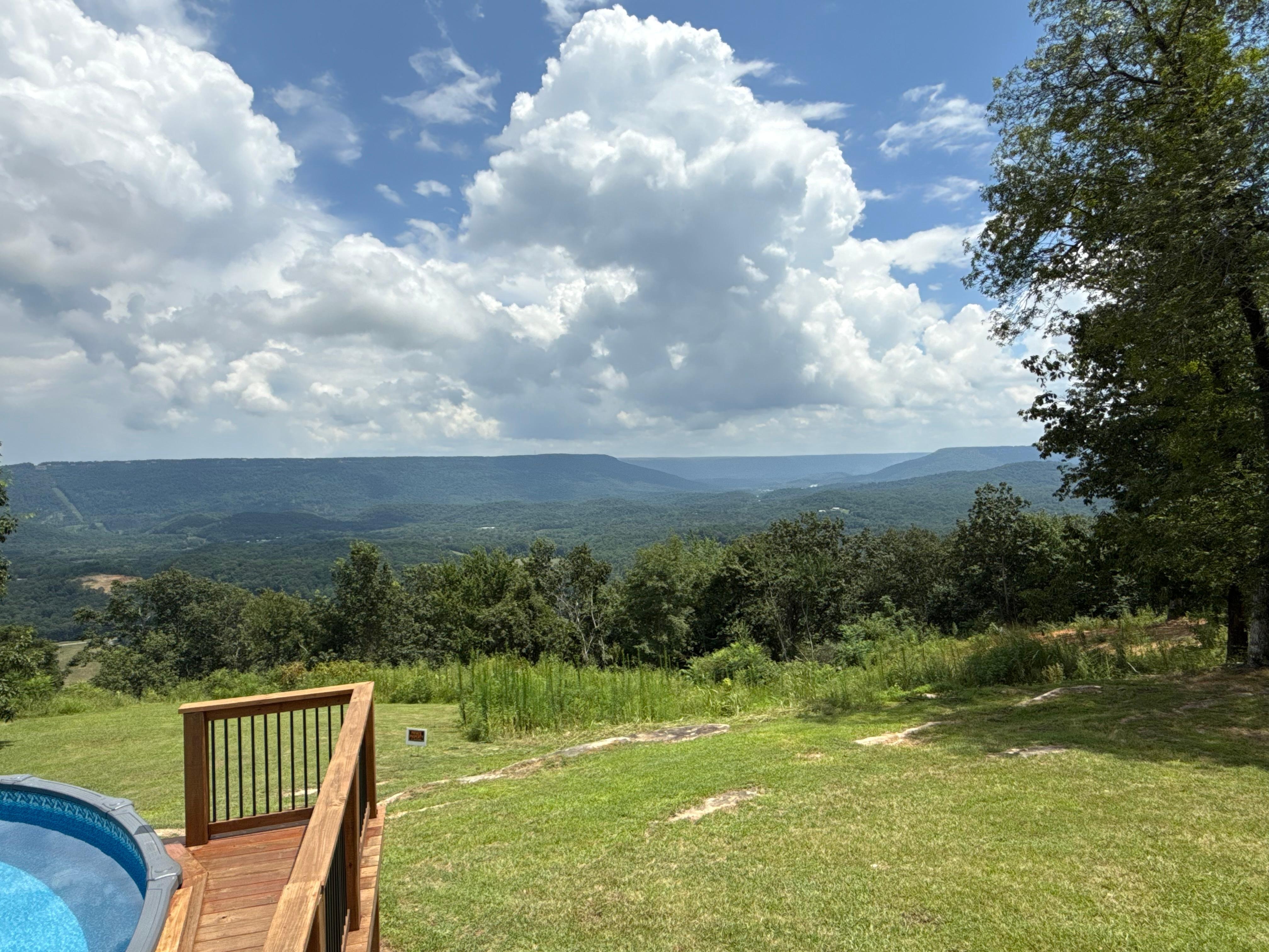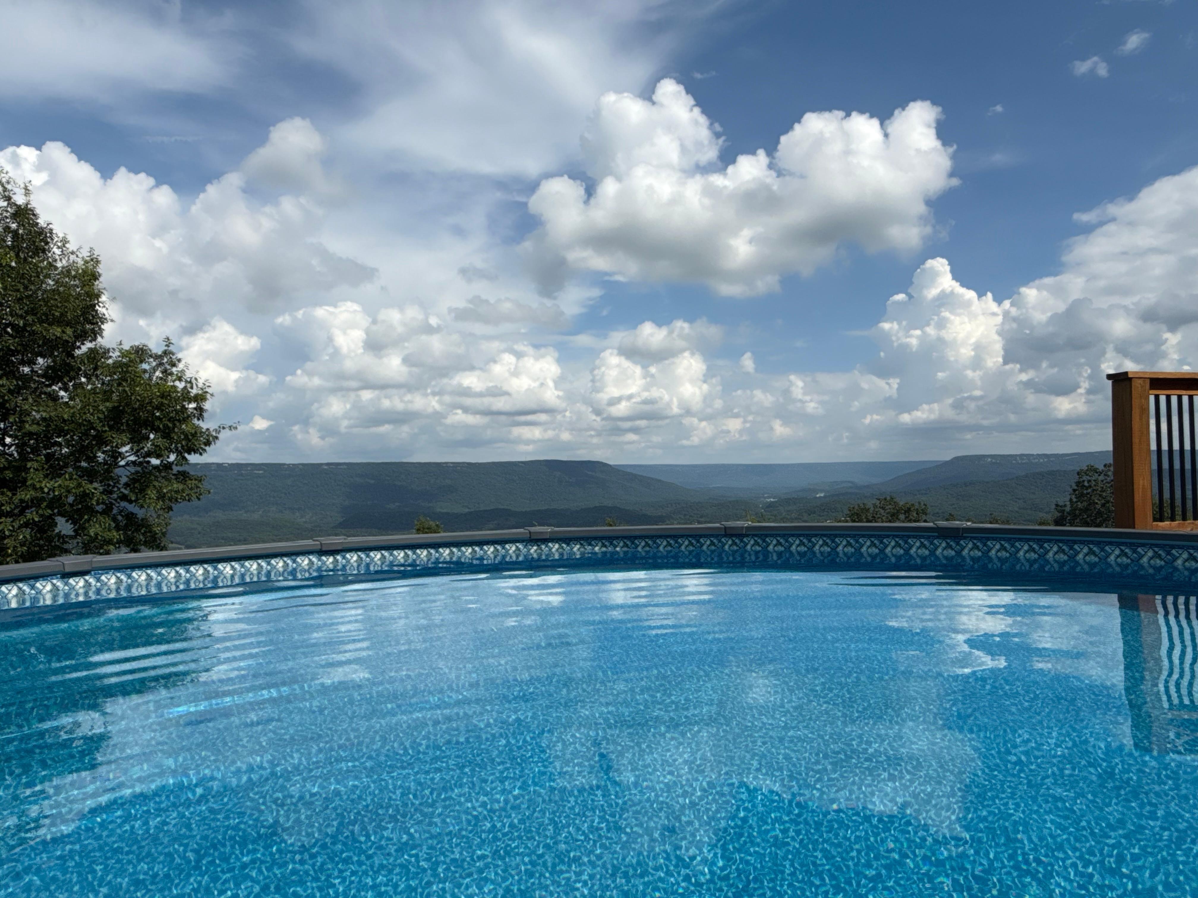 OUTDOOR LIVING: Private seasonal pool (available May 21st-September 21st), deck, dining area w/ umbrella, panoramic mountain views, fenced-in yard, porch swing