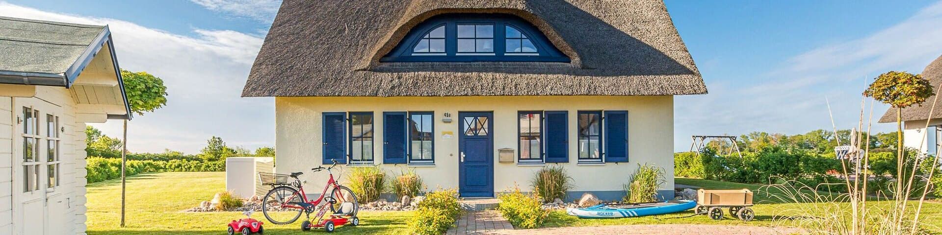 Reetdachhaus in Strandnähe mit großem Garten für 8 Personen